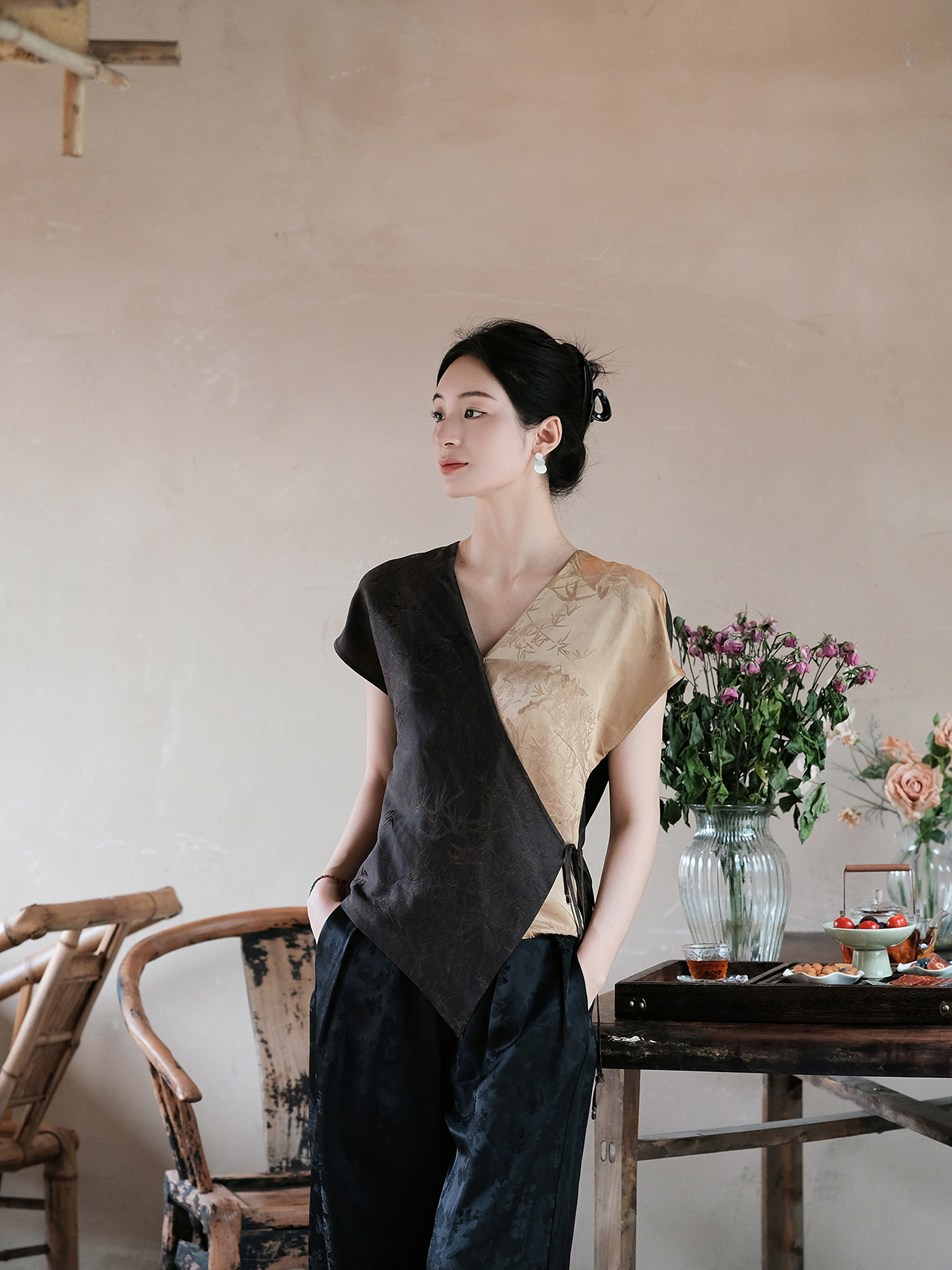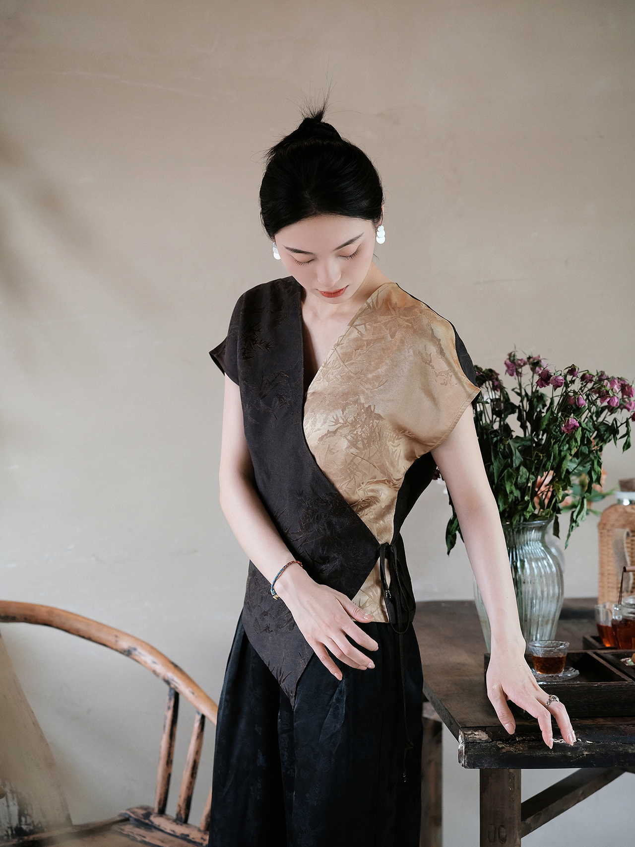 盛唐婧 |新中式真丝丝绒上衣
