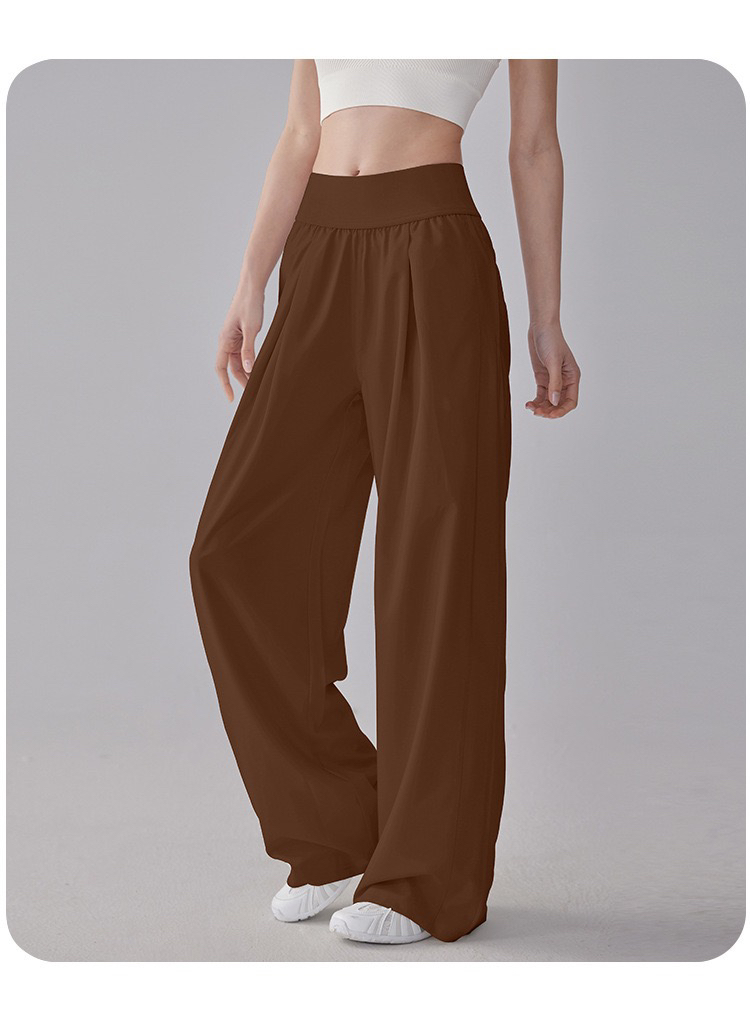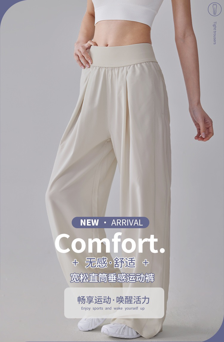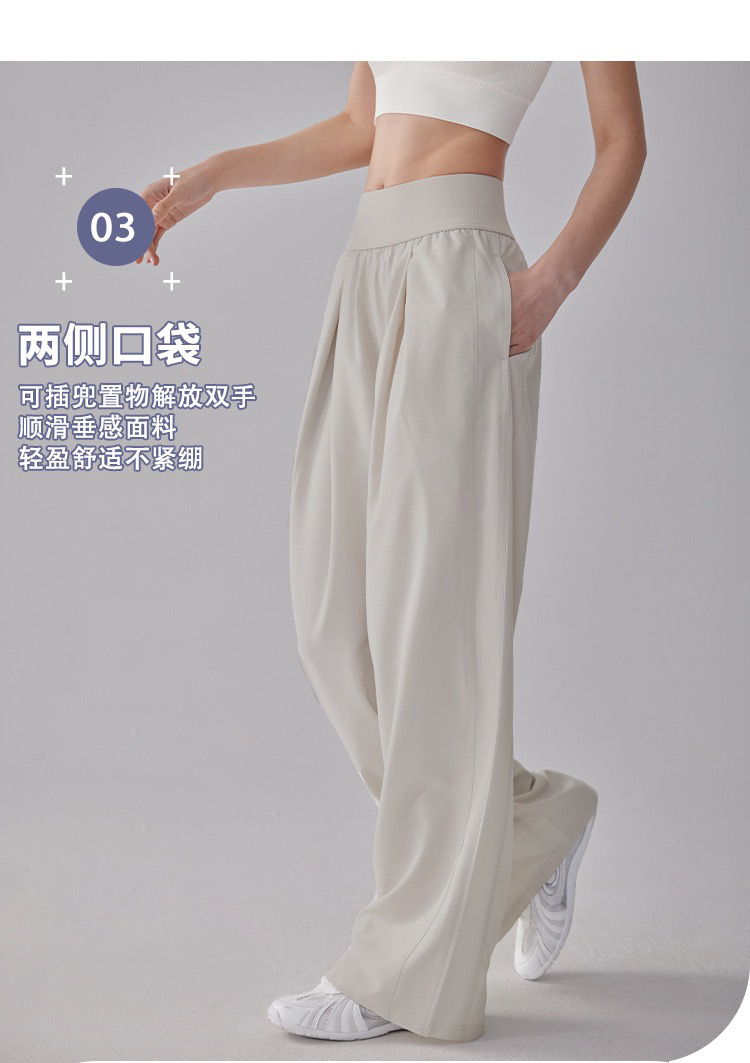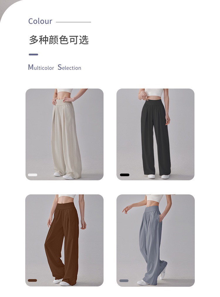 新款高腰宽松阔腿裤女透气百搭侧袋轻盈高弹瑜伽长裤MXCK998