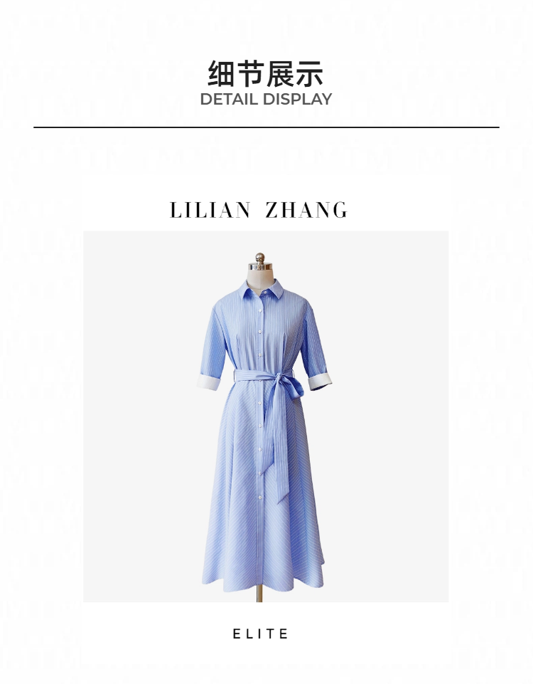 定制静奢风 「戛纳海风」盐系清简法式斜裁条纹蓝调衬衫裙 2601006