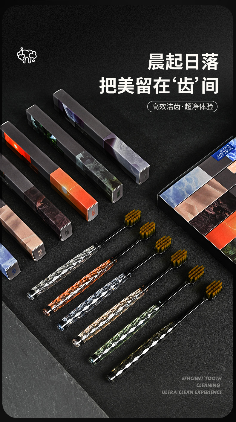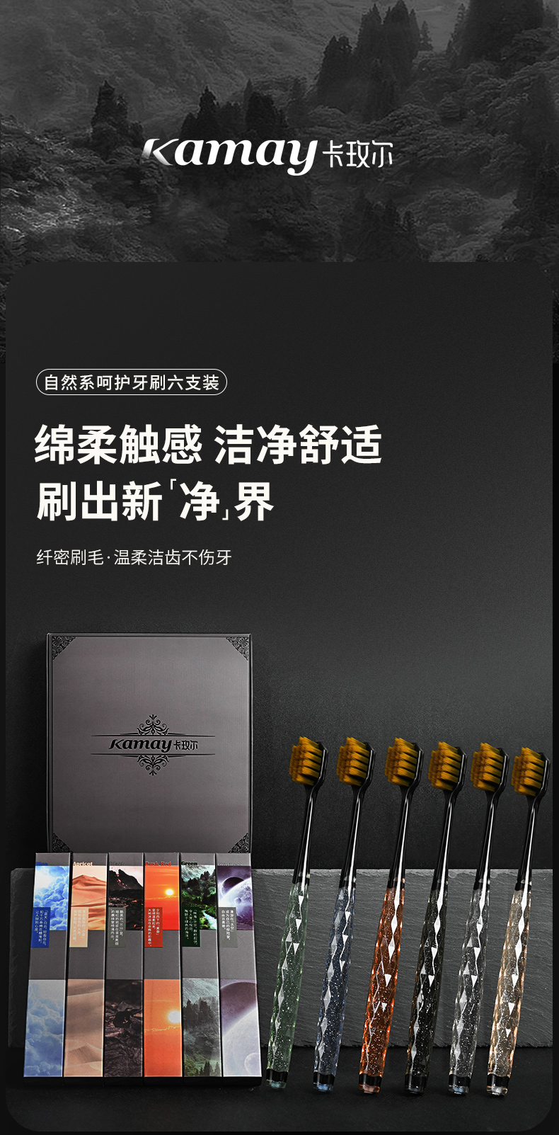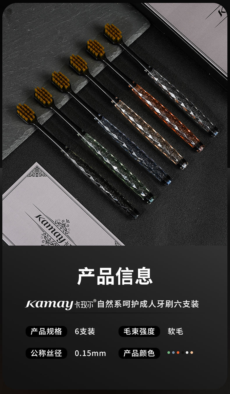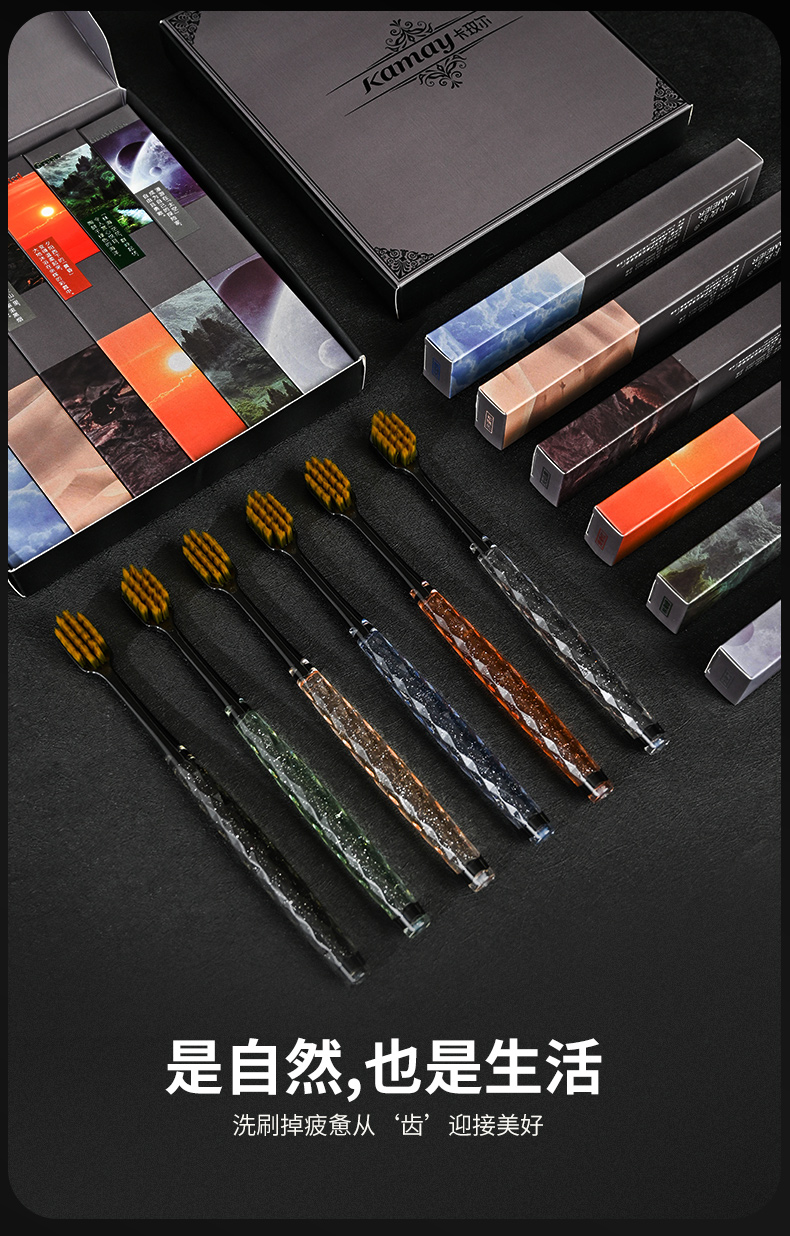卡玫尔国风方孔万毛牙刷 绵柔触感深层清洁软毛牙刷 呵护牙龈套盒六支装