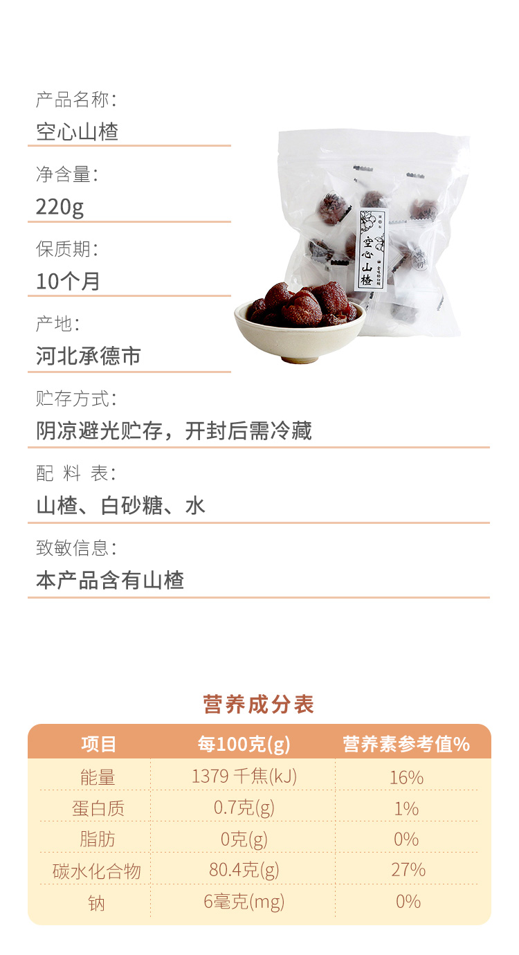为使空心山楂口感更为软糯,制作工艺升级,包装袋上会有少量糖液附着,为正常现象,不影响品质。