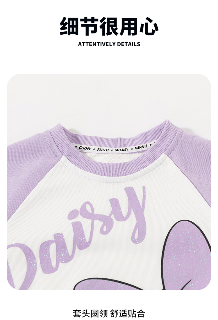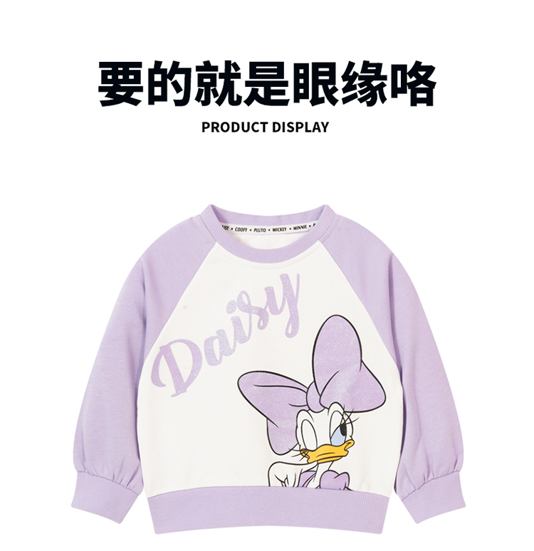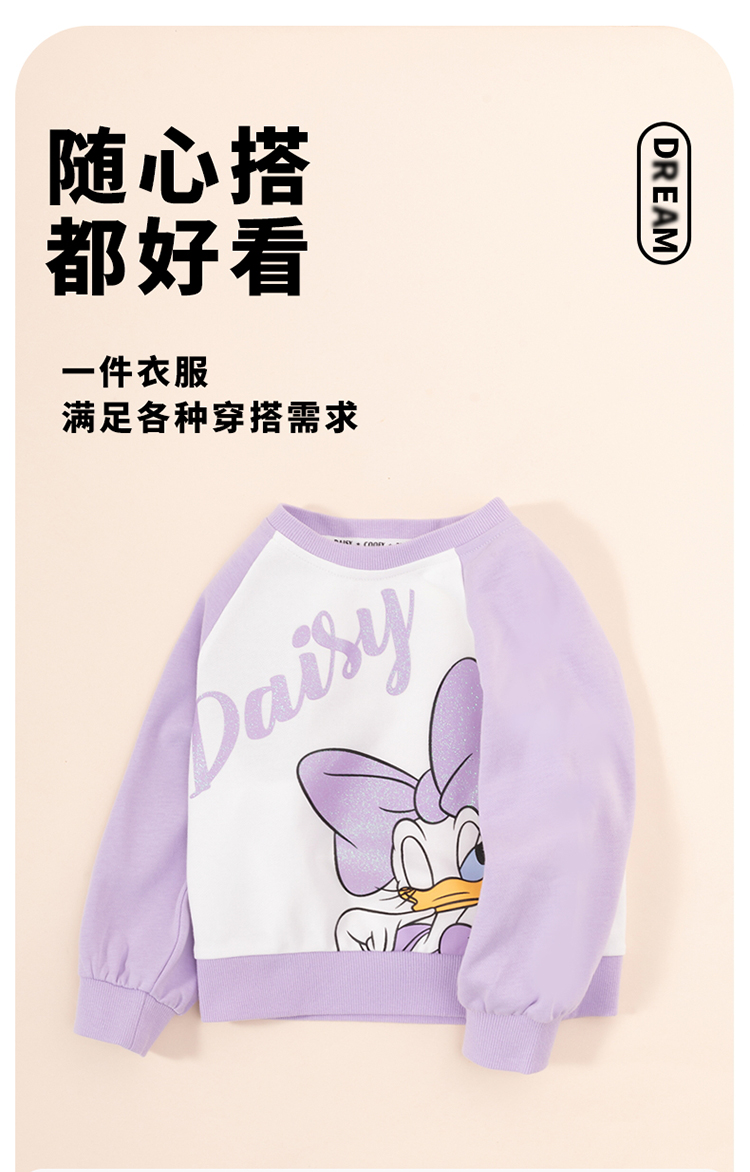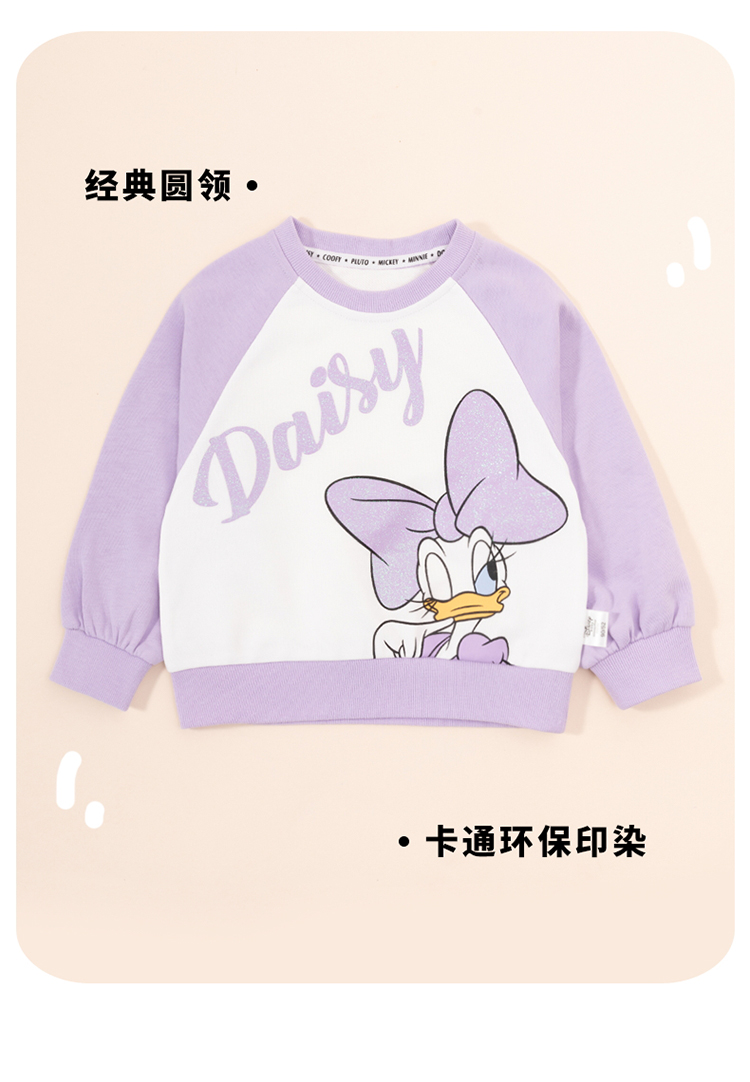 迪士尼童装女童插肩袖套头卫衣春秋款女宝宝黛丝公主印花甜美上衣ZD3CS011
