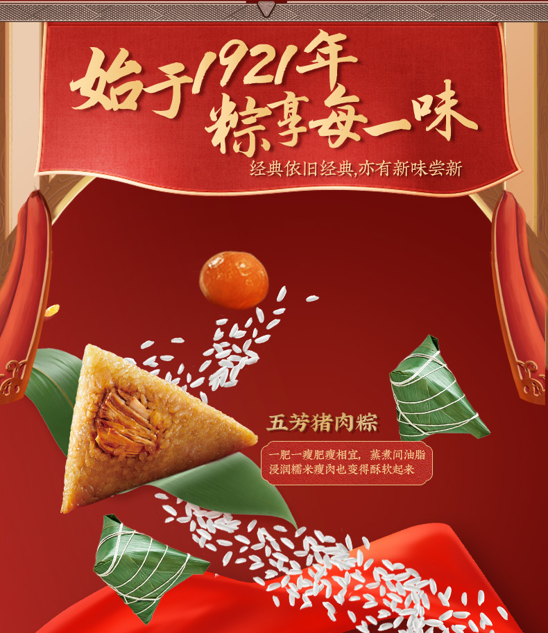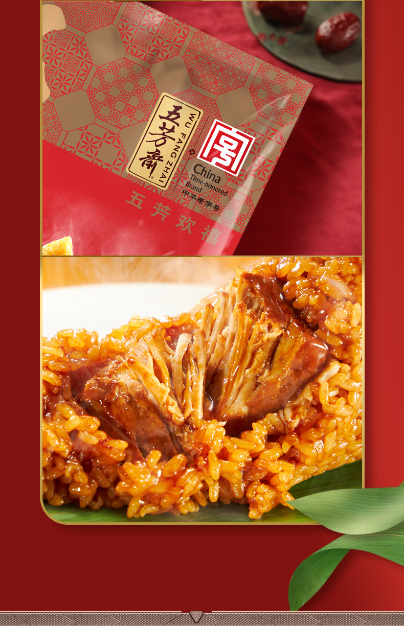 五芳斋 锁鲜红烧五花肉鲜粽 红烧风味入米 肉酥烂不柴 咸甜交织如现包 140g*1