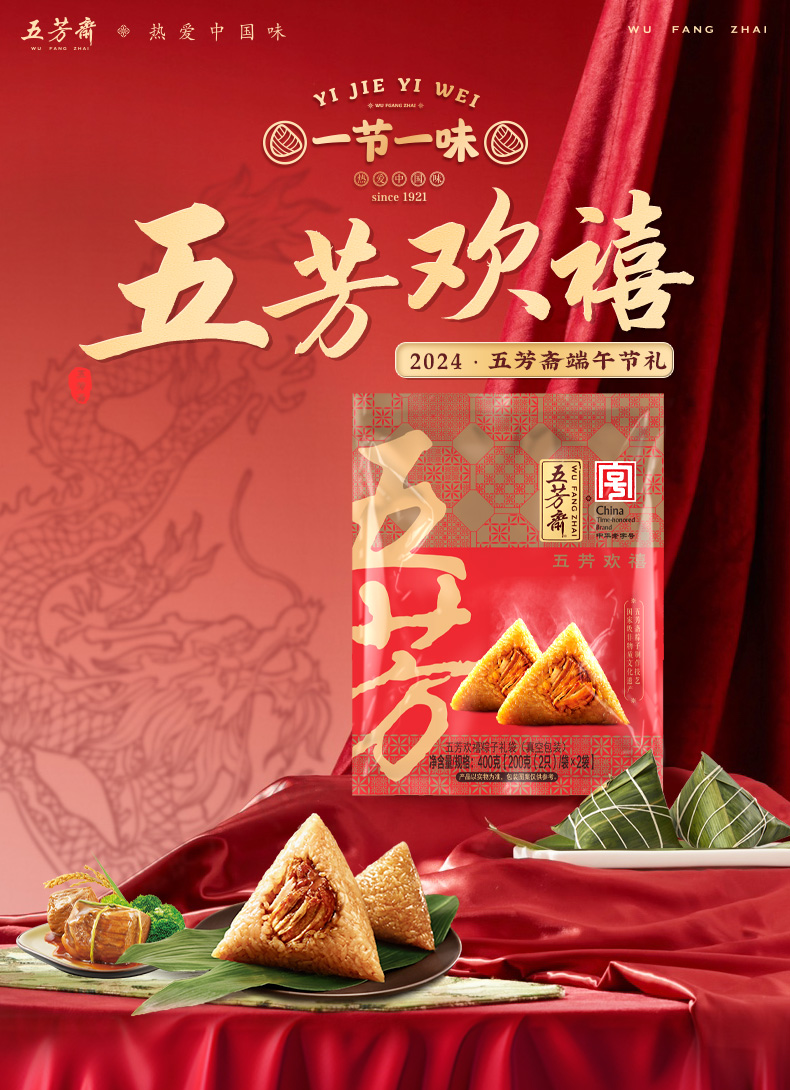 五芳斋 五芳欢禧礼袋粽五芳猪肉粽量贩100克*4只