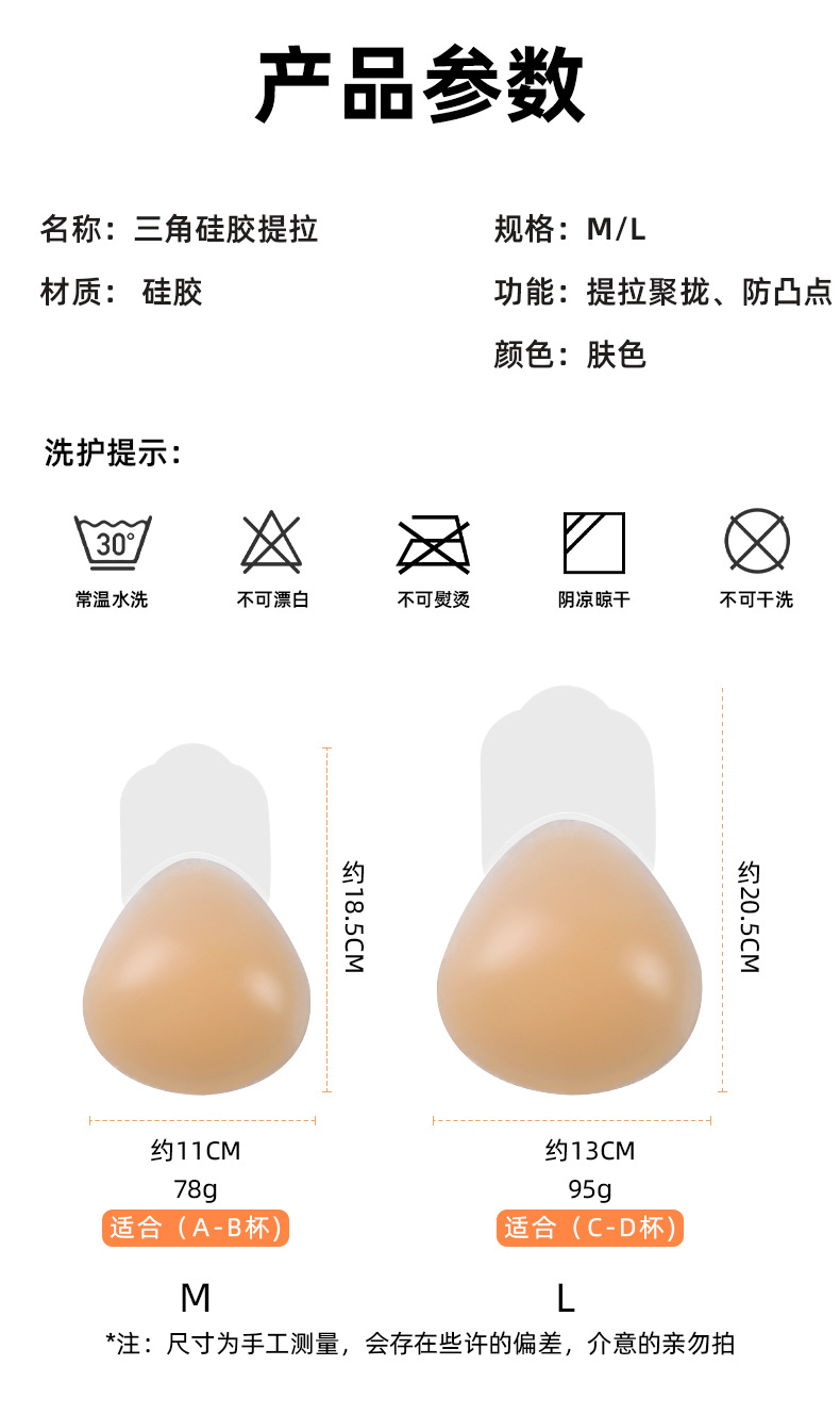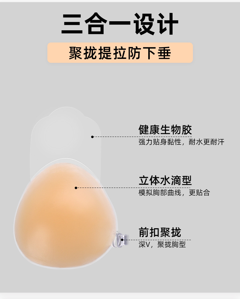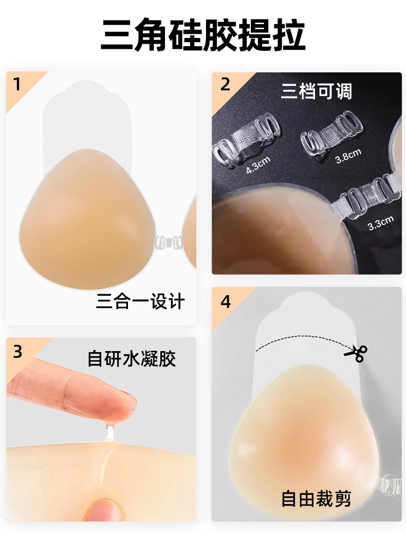 三角硅胶提拉胸贴 隐形无痕带扣聚拢上托小胸变大防下垂防凸点中扣款乳贴
