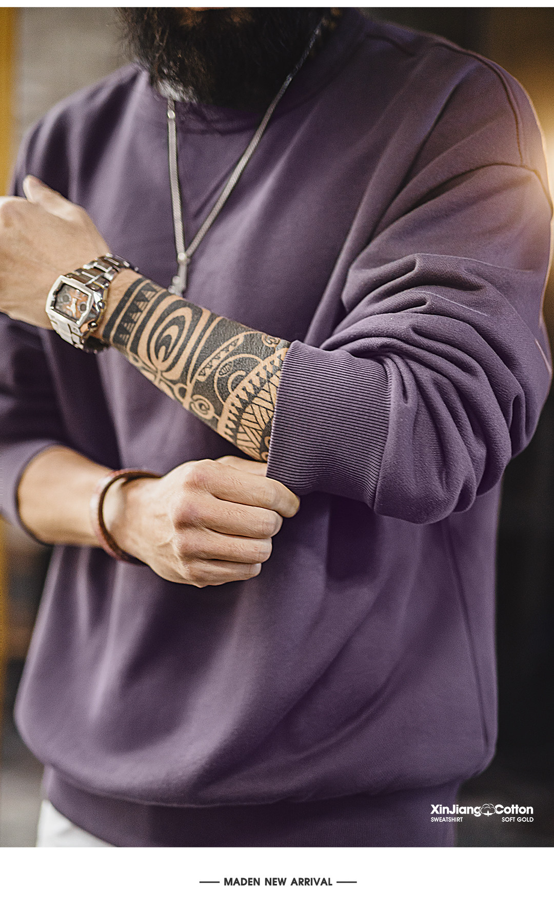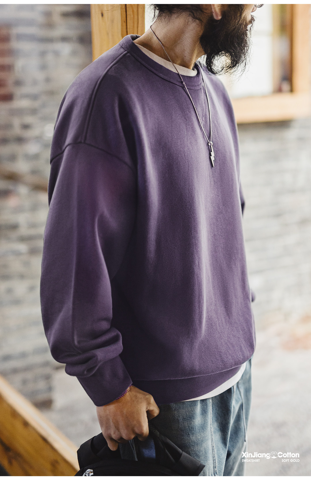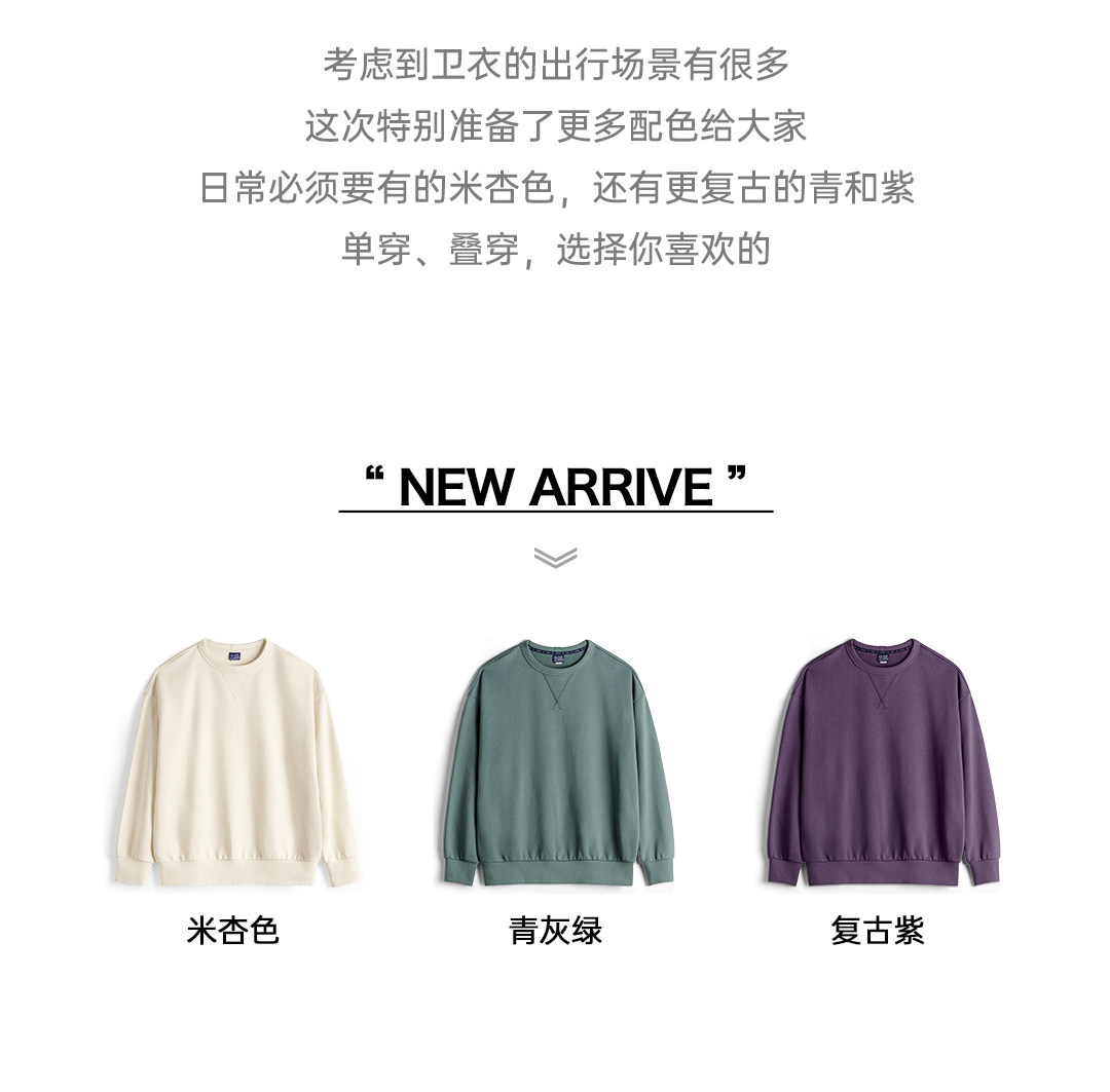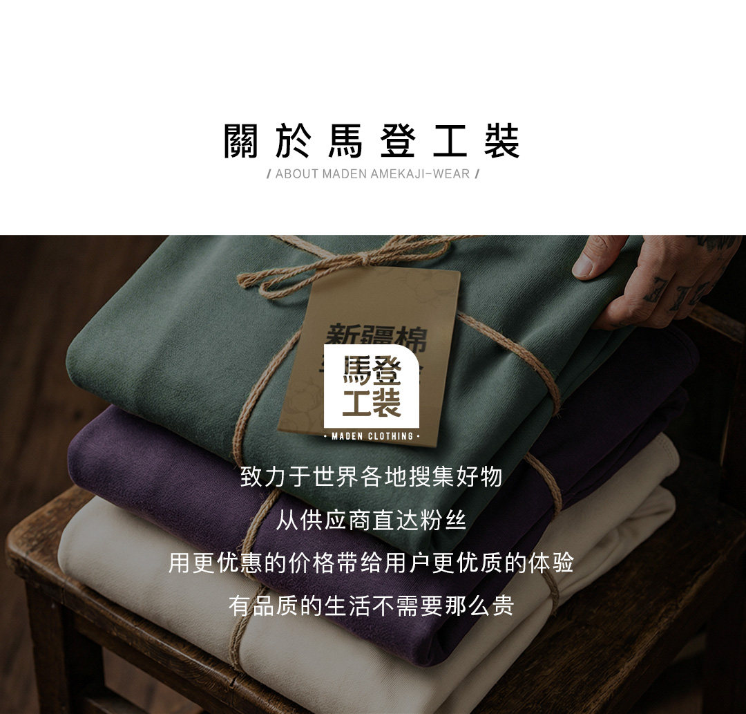 马登工装美式新疆棉卫衣紫色圆领套头无帽外穿宽松长袖外套男款春