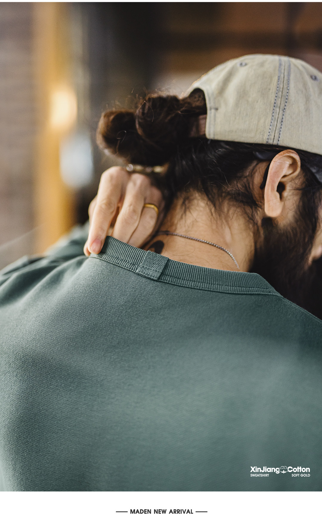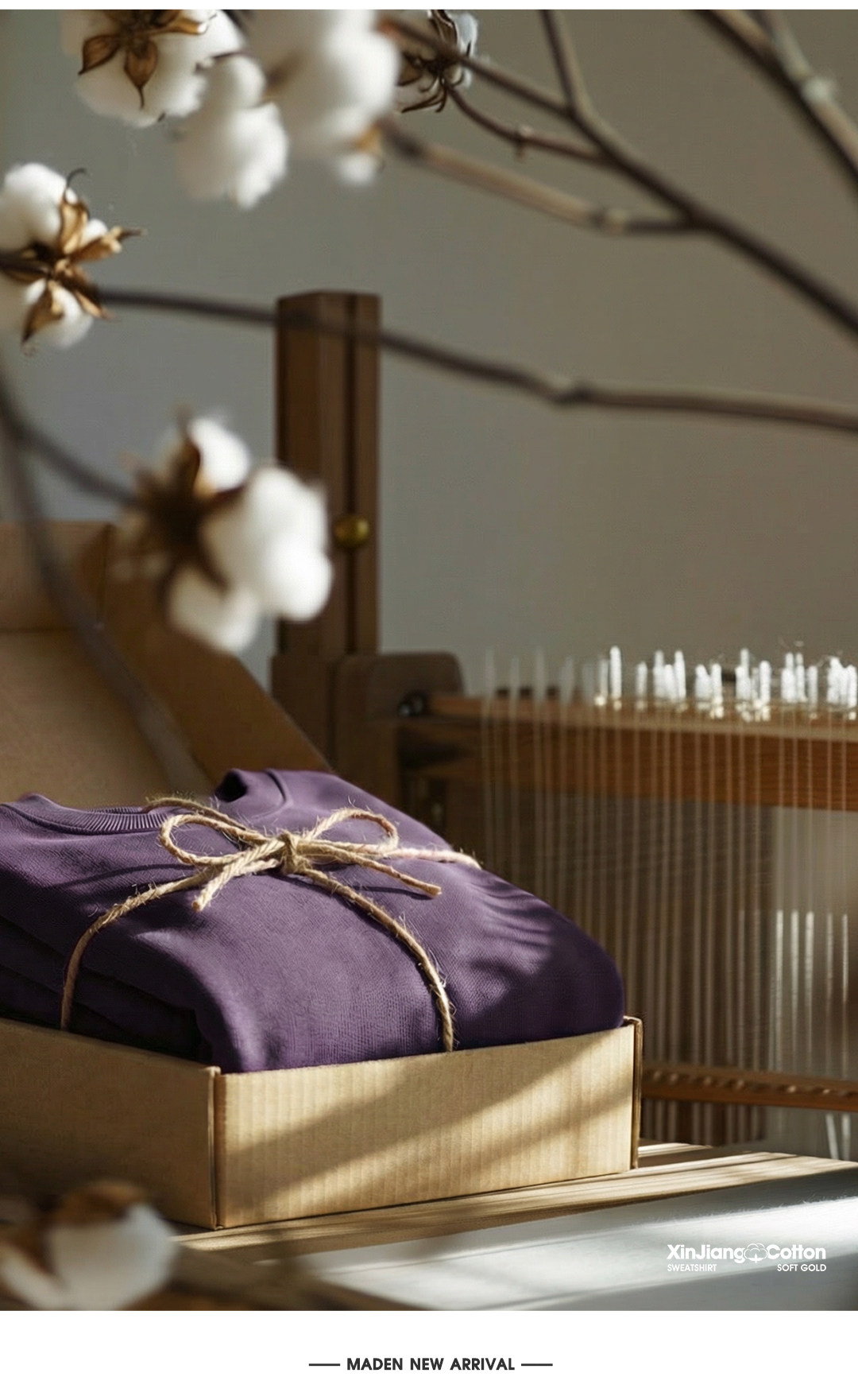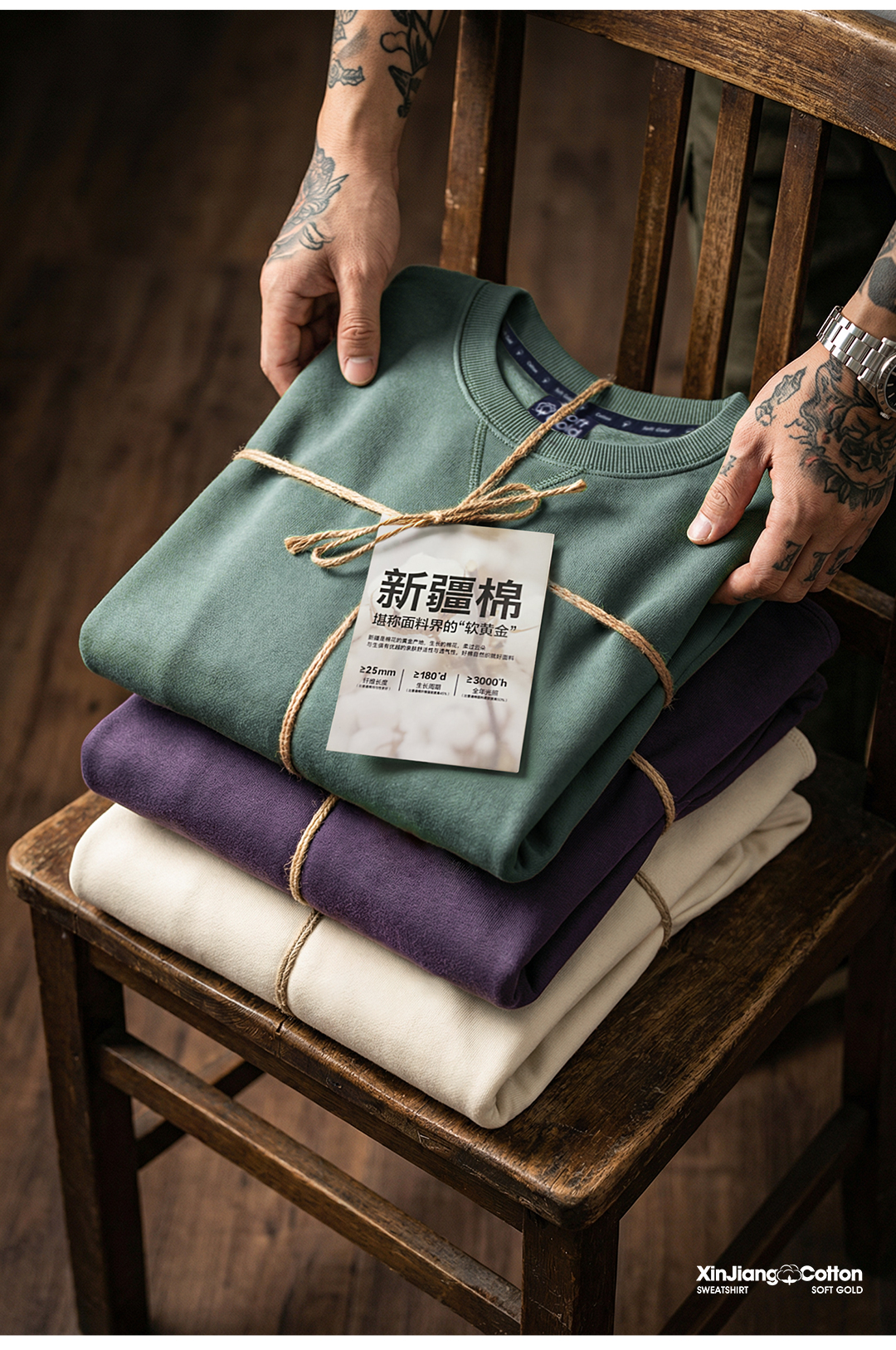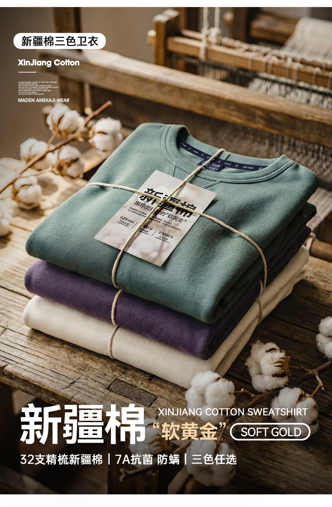 马登工装美式新疆棉卫衣紫色圆领套头无帽外穿宽松长袖外套男款春