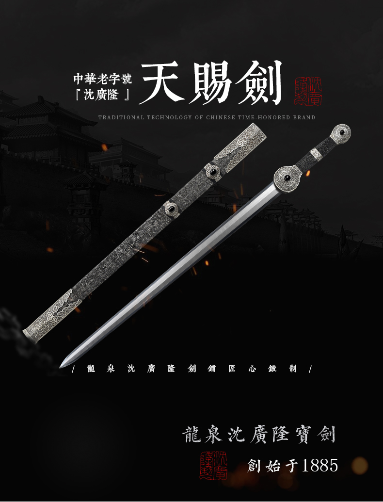 - 龙泉沈广隆剑舖创始于1885年(清光绪)位于浙江省龙泉市,是当地唯一一家“子承父业”一脉相承的中华老字号宝剑生产企业,是国家级非物质文化遗产龙泉宝剑项目保护单位,并以“天下第一剑”闻名于海内外....