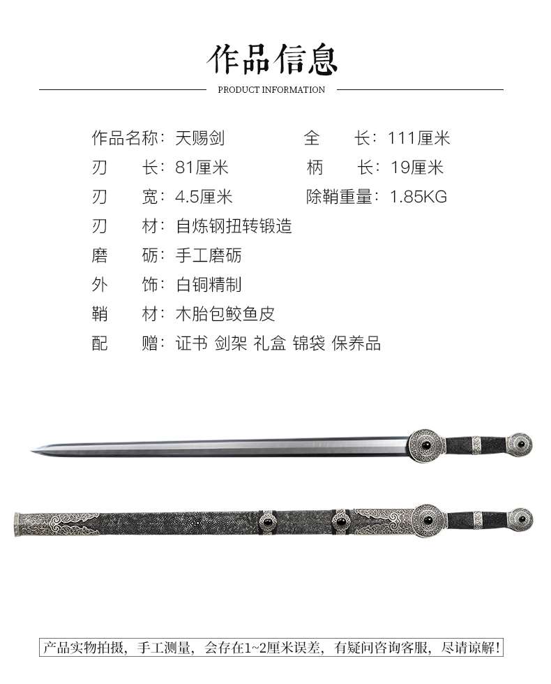 天赐剑 龙泉沈广隆一体宝剑 收藏传统宝剑 非遗宝剑 未开刃
