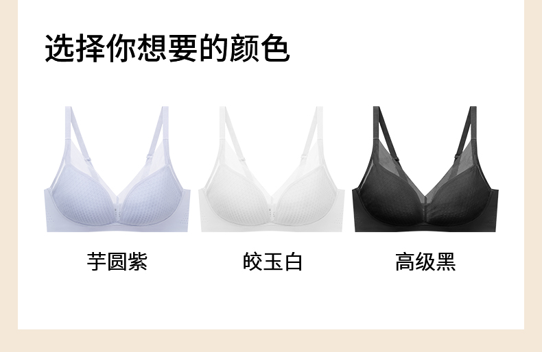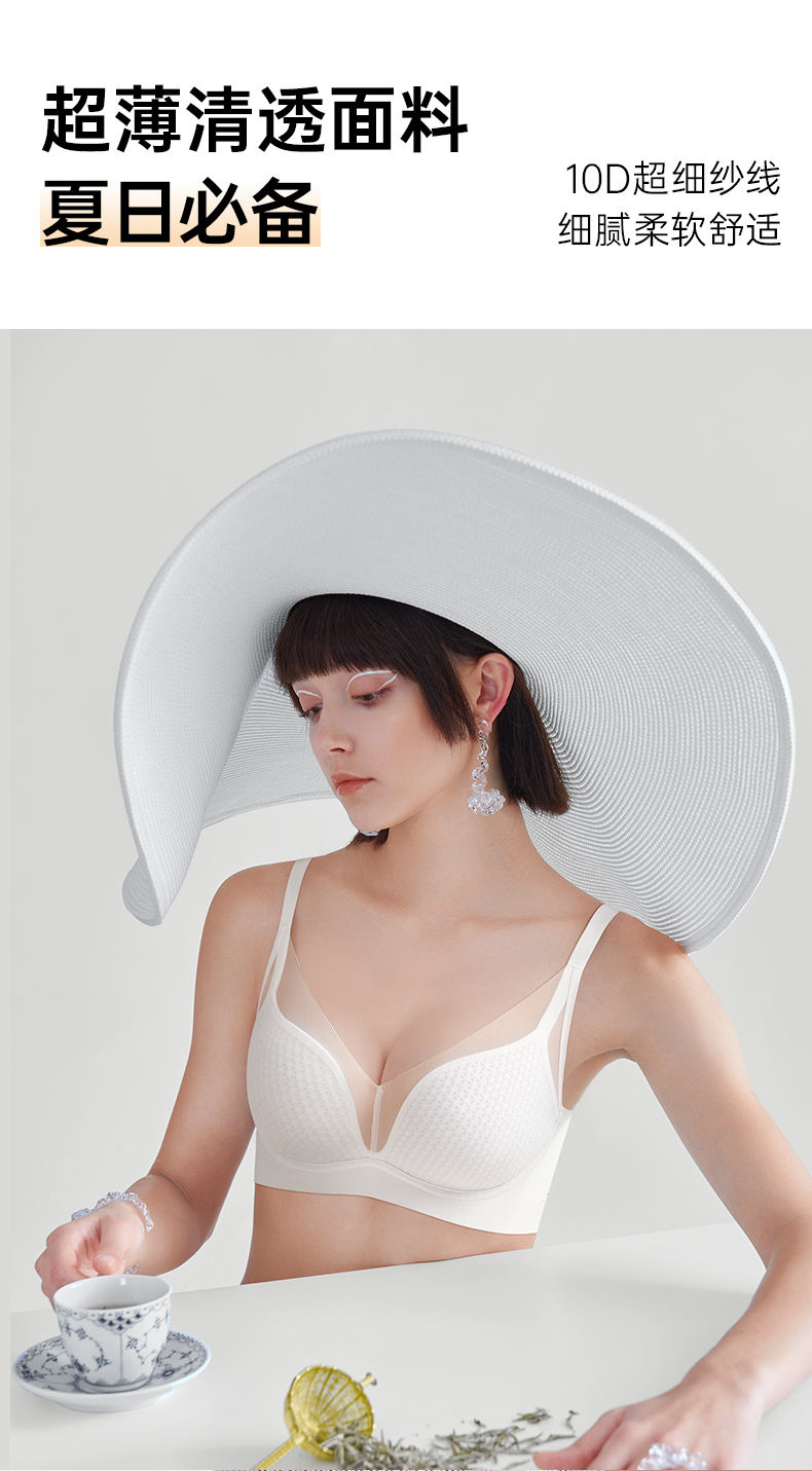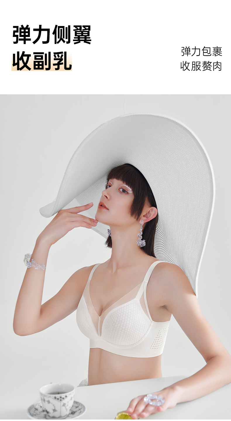 D2-【B-D杯】润微内衣女裸感舒适无痕弹力网纱无钢圈承托防下垂收副乳 雾纱浮梦【大胸-蕾丝】