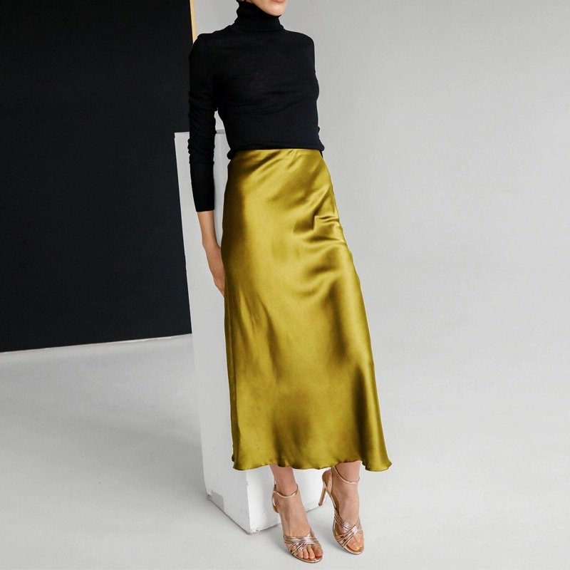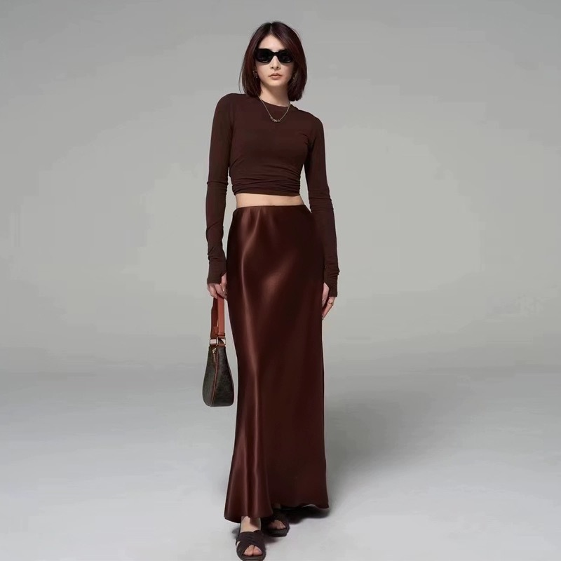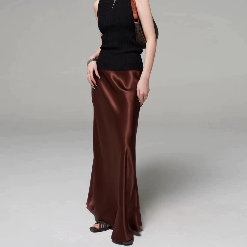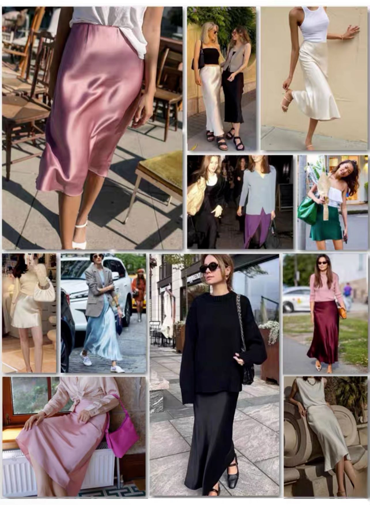 2025新款松紧腰日本进口三醋酸A字半身裙!三个长度斜裁拖地长裙!短裙!脚踝高腰半裙鱼尾裙!