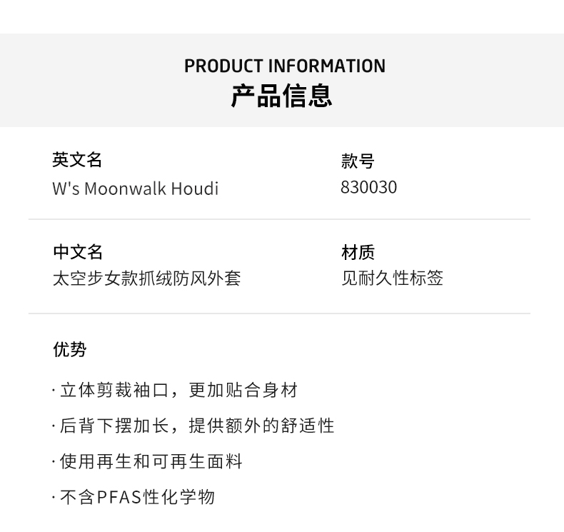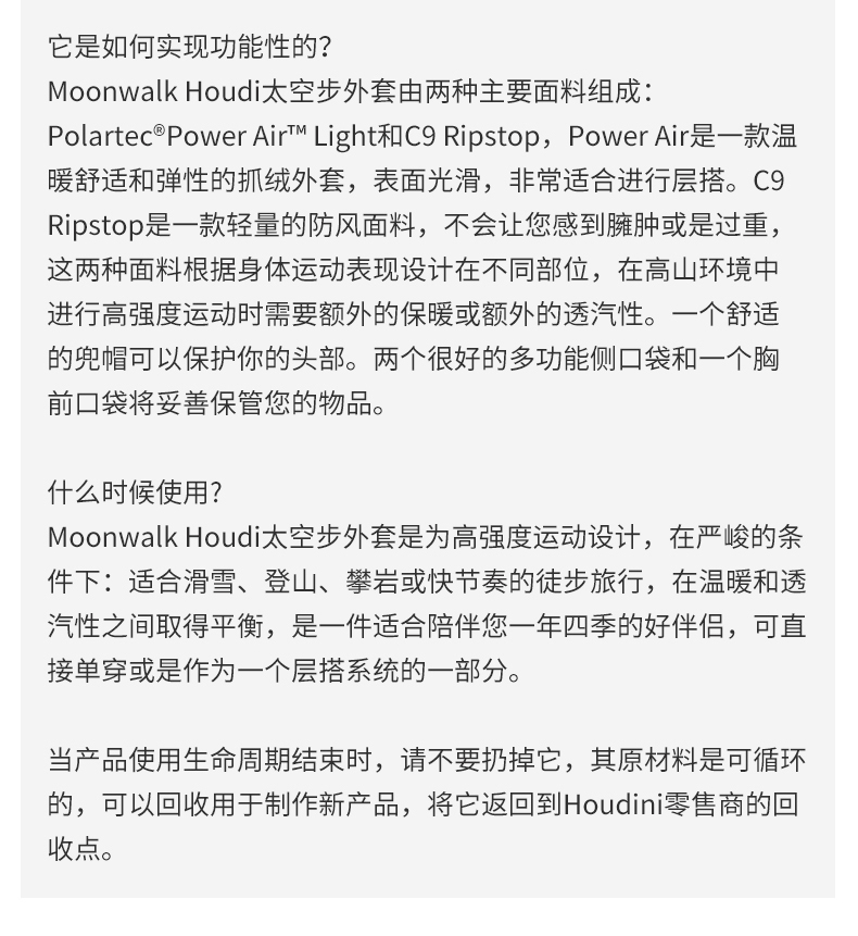 HOUDINI胡丁尼 Moonwalk Houdi 太空步 女款户外抓绒防风休闲外套830030