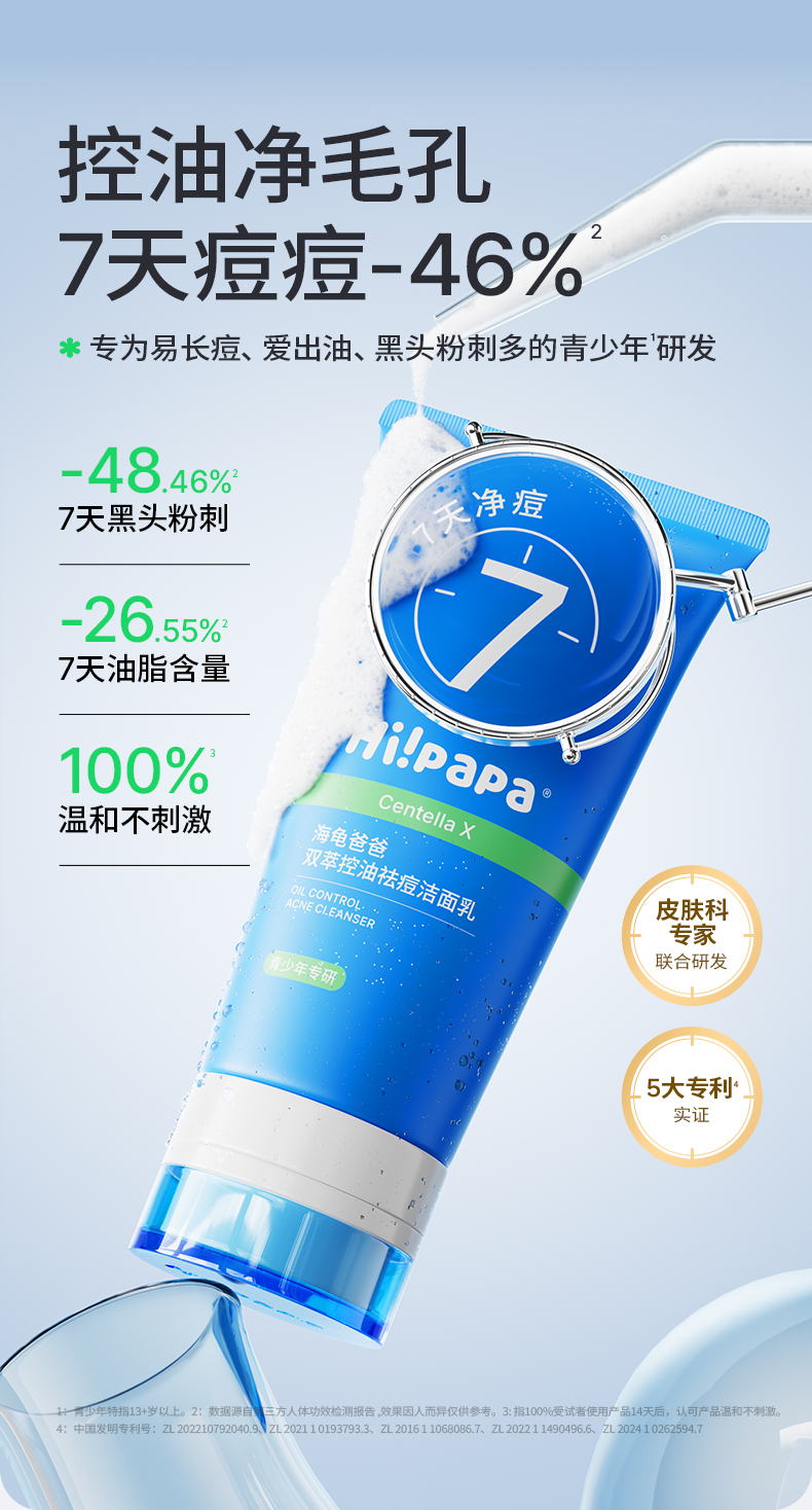 海龟爸爸青少年祛痘洁面乳/植萃无酸净化包