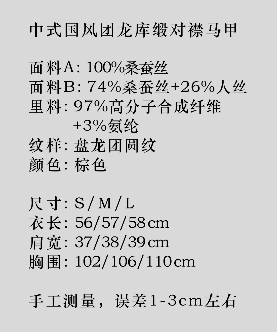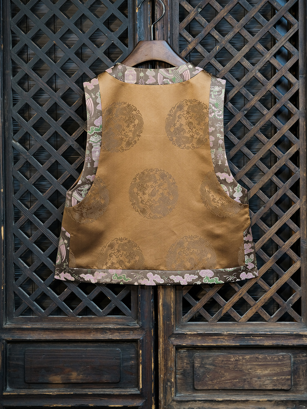 盛唐婧 |中式国风团龙库缎对襟马甲-棕色