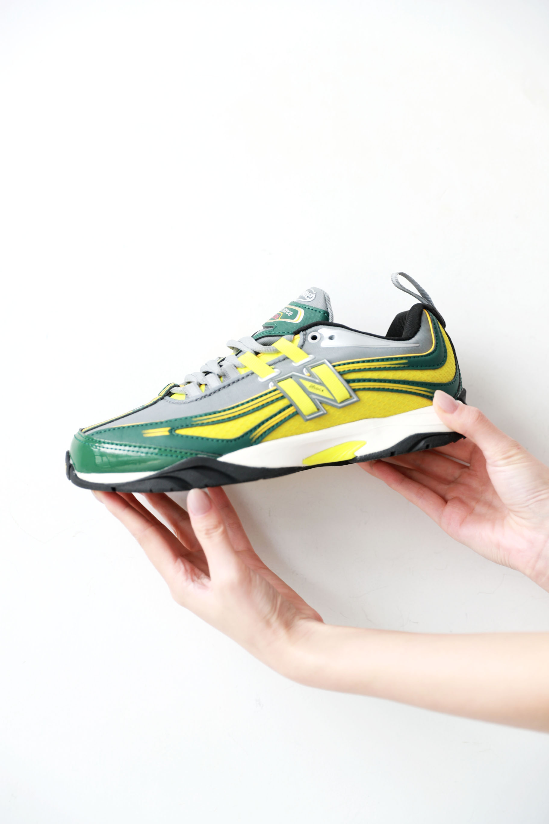 复古联名慢跑鞋,清柠绿+明黄+金属银。山系户外缓震跑鞋C100768
