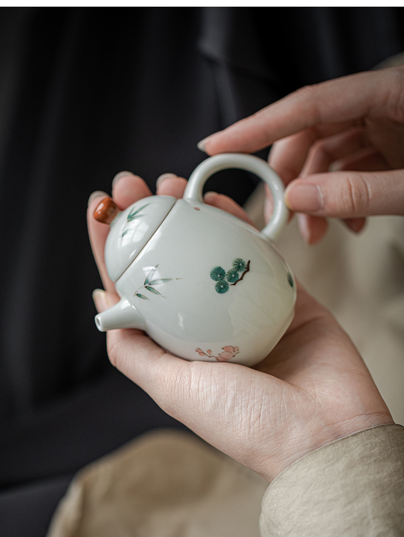 永利汇秘青复古茶壶手工陶瓷龙旦壶釉下彩手绘单壶带过滤功夫茶