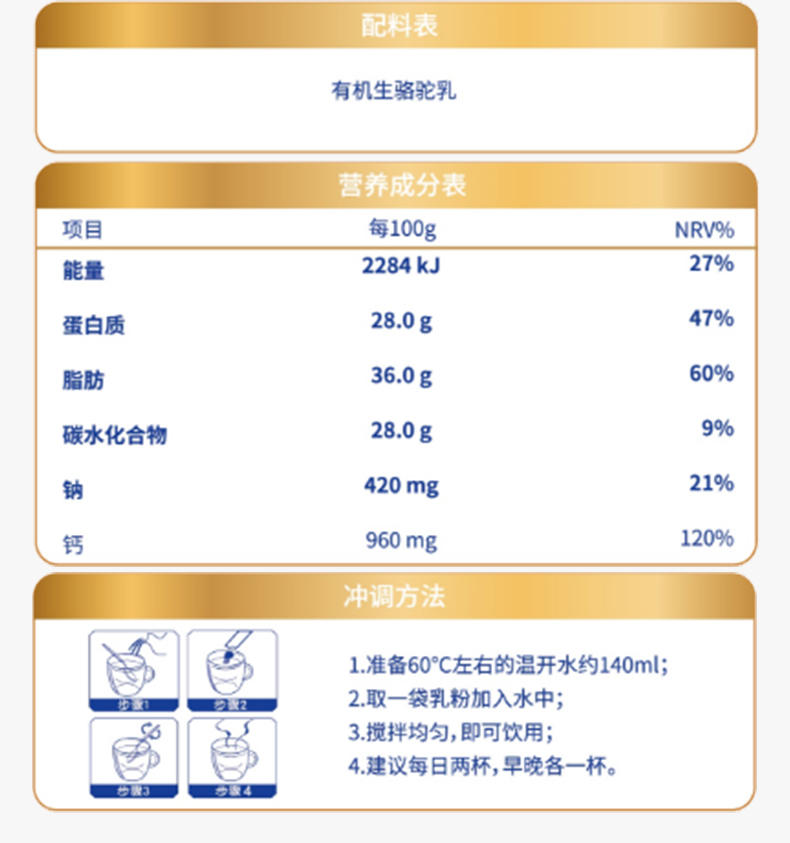 有机纯骆驼乳粉 无添加蔗糖源自新疆纯正有机假一赔十300g