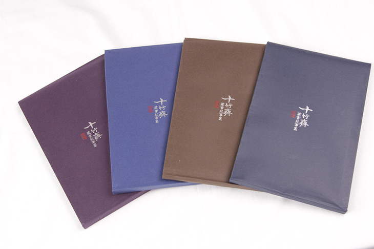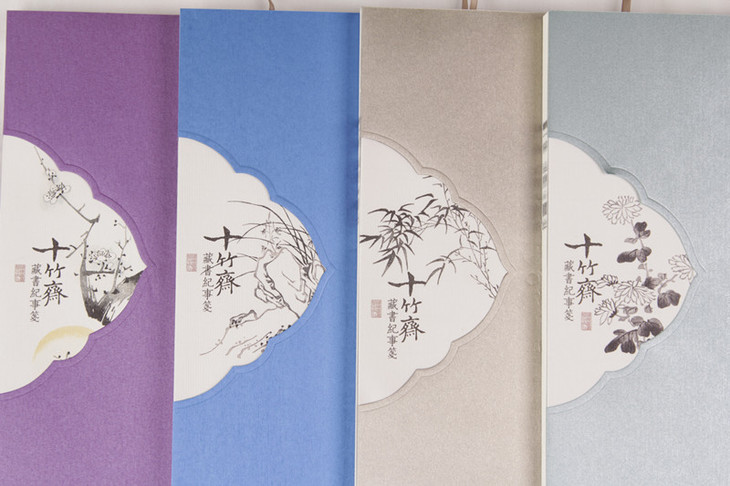 此系列本册共有四款,分别为梅、兰、竹、菊,封面为不同颜色并配有不同颜色的礼袋装,每册均附赠一张十竹斋拱花笺纸。