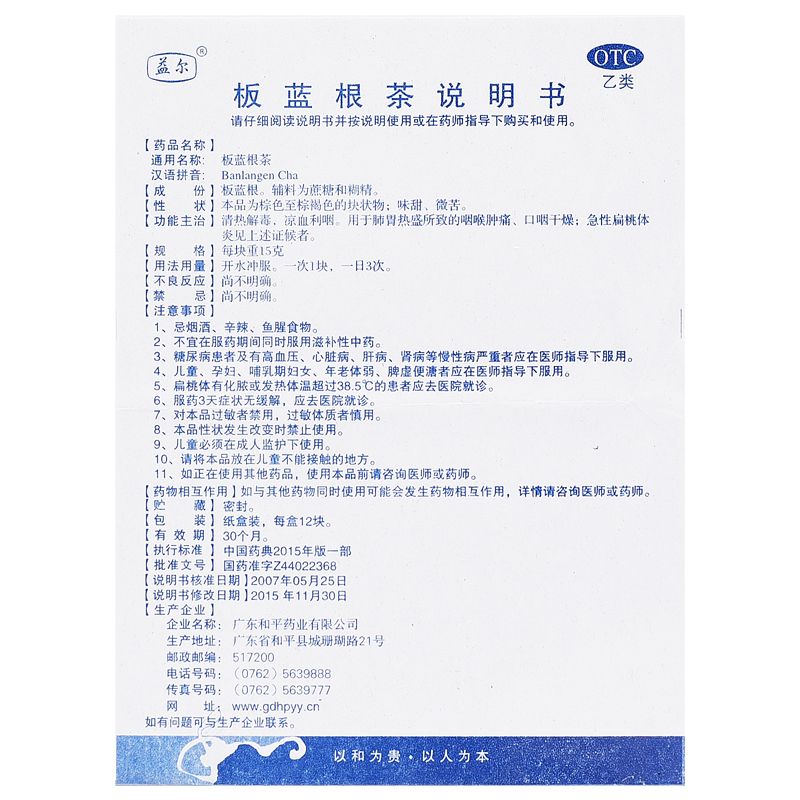 益尔 板蓝根茶12块/盒清热解毒凉血利咽用于肺胃热盛所致咽喉肿痛