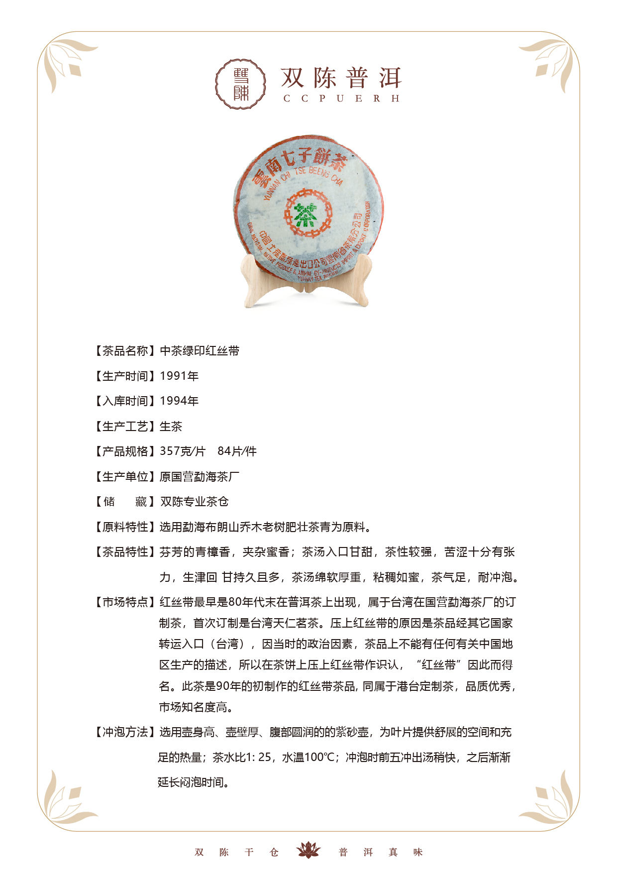 1991年中茶绿印红丝带