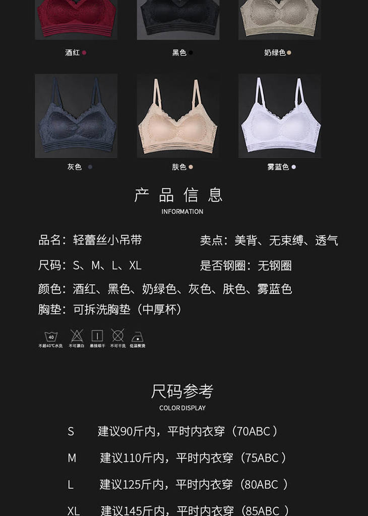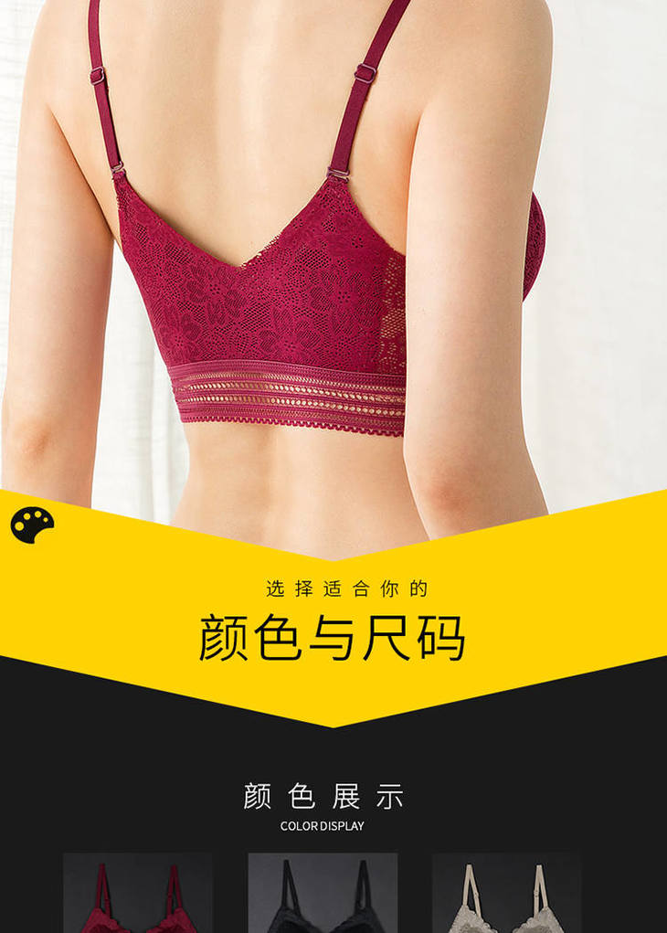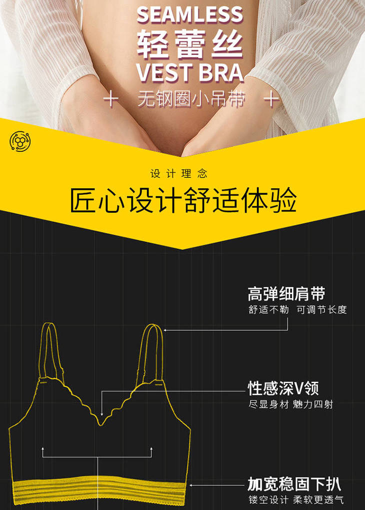 无痕性感蕾丝安心美背运动内衣 无钢圈聚拢吊带睡眠文胸