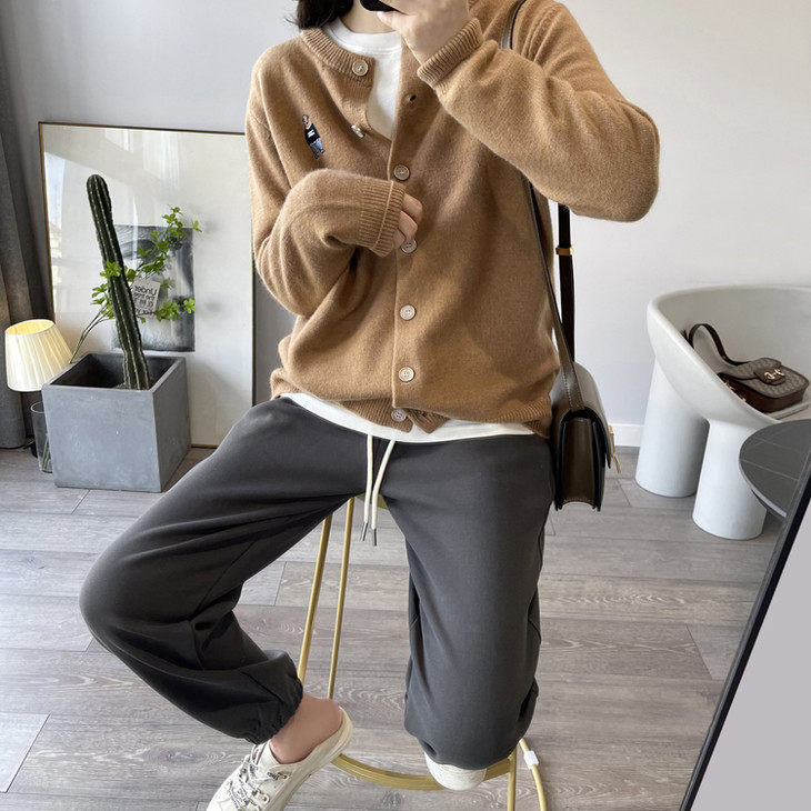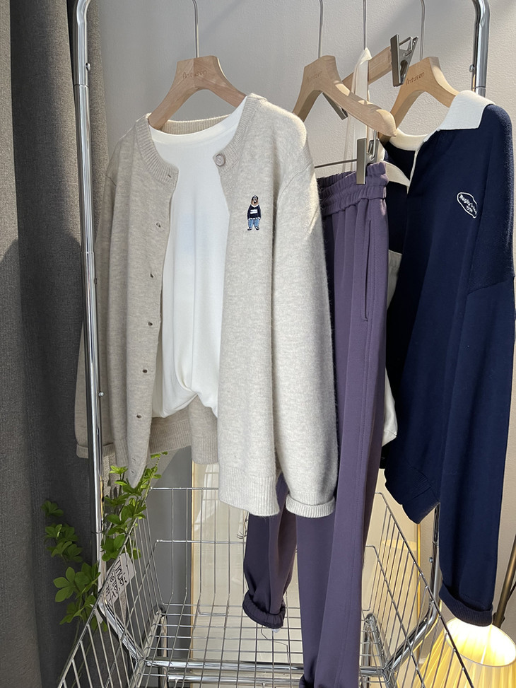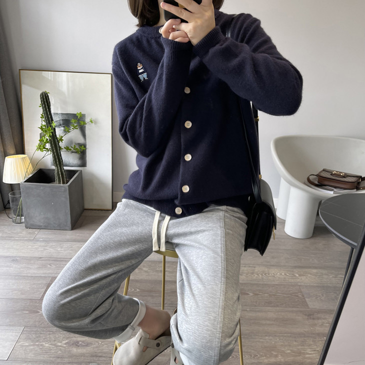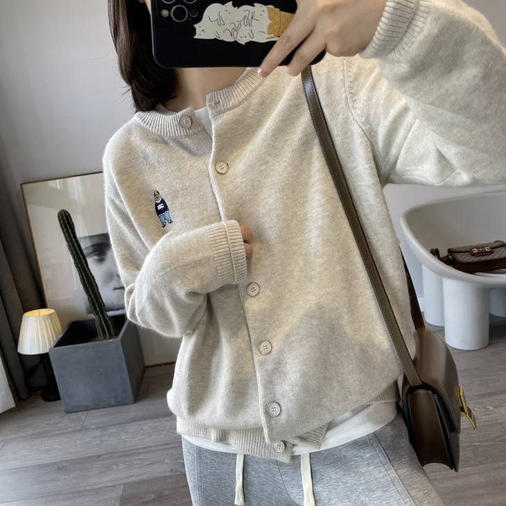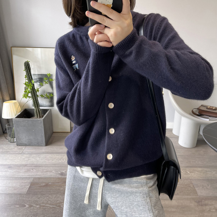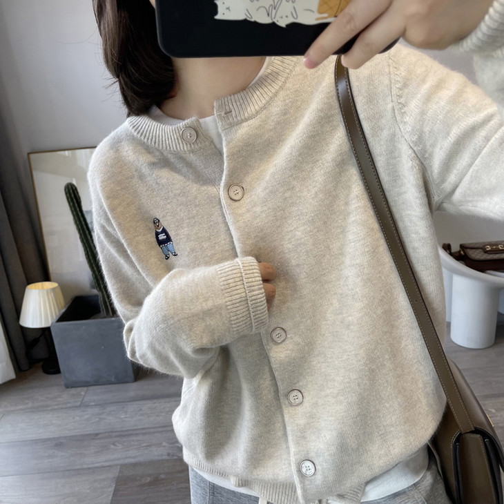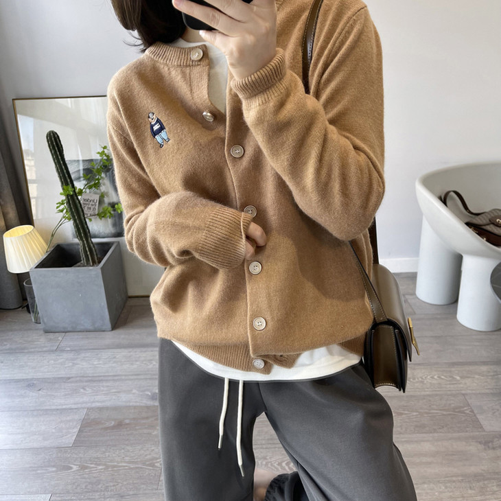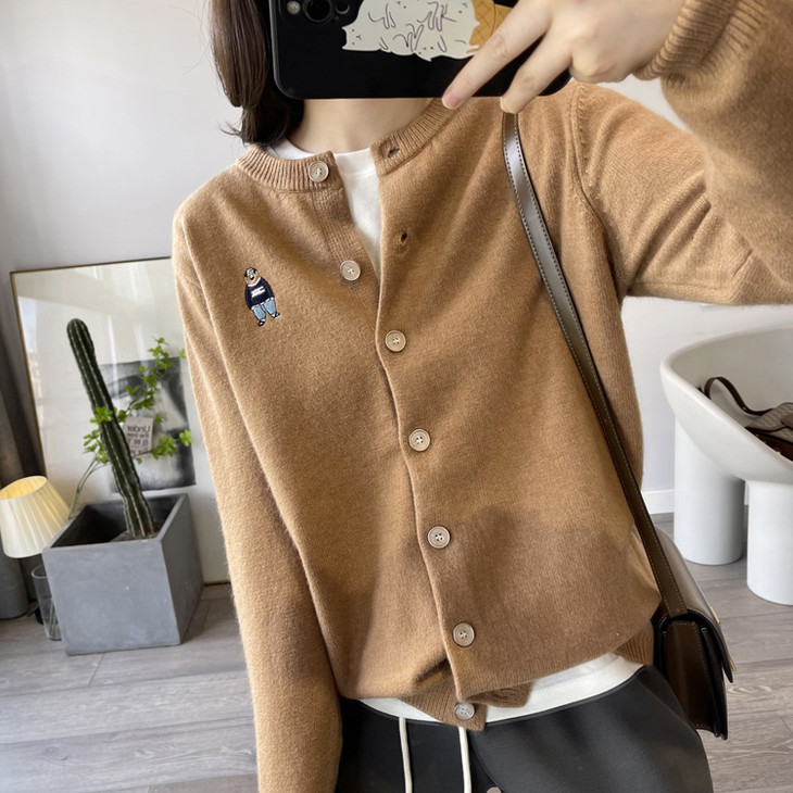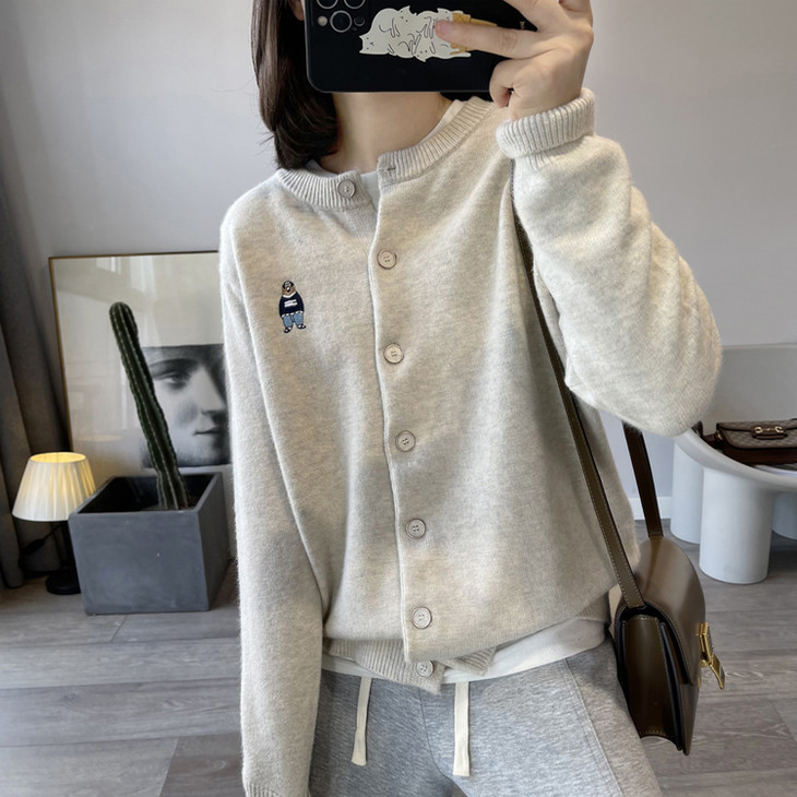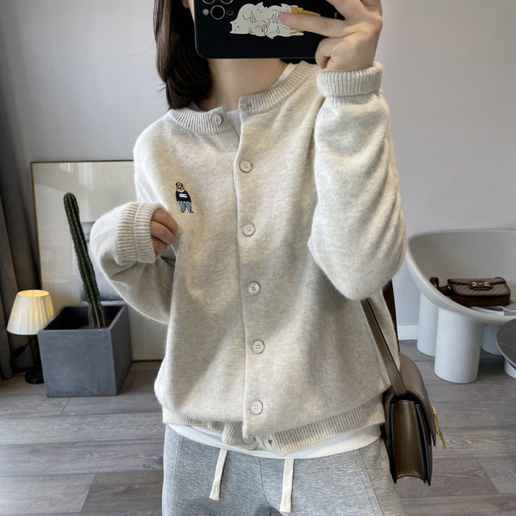 出口韩国【小熊针织开衫】单排扣圆领长袖毛衣外套 软糯上衣亲肤舒适 遮肉显瘦