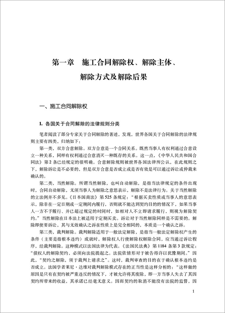 第一章 施工合同解除权、解除主体、解除方式及解除后果/1