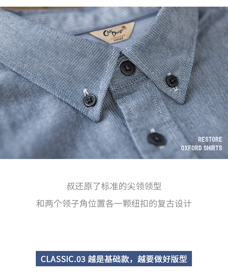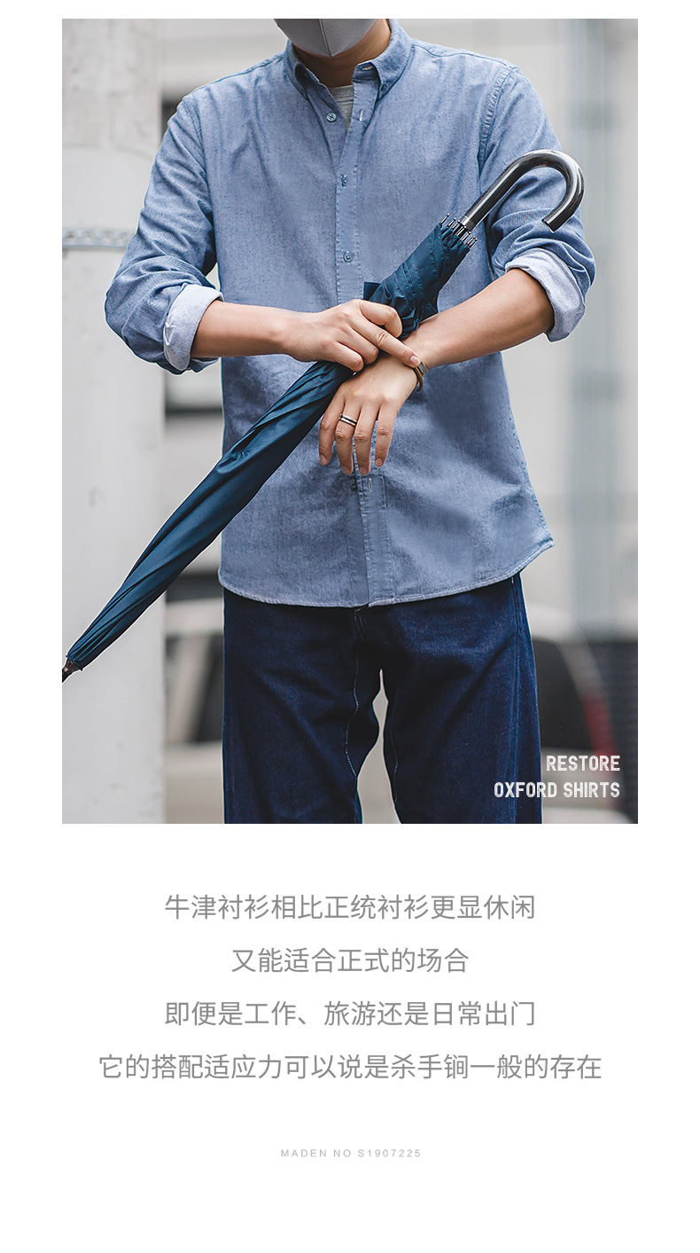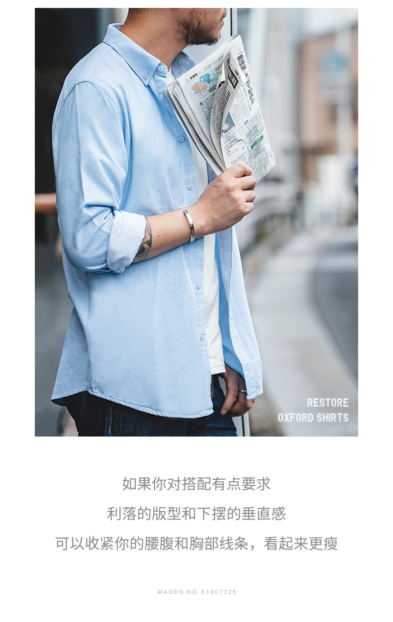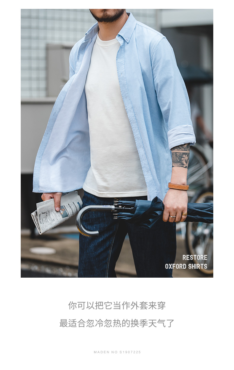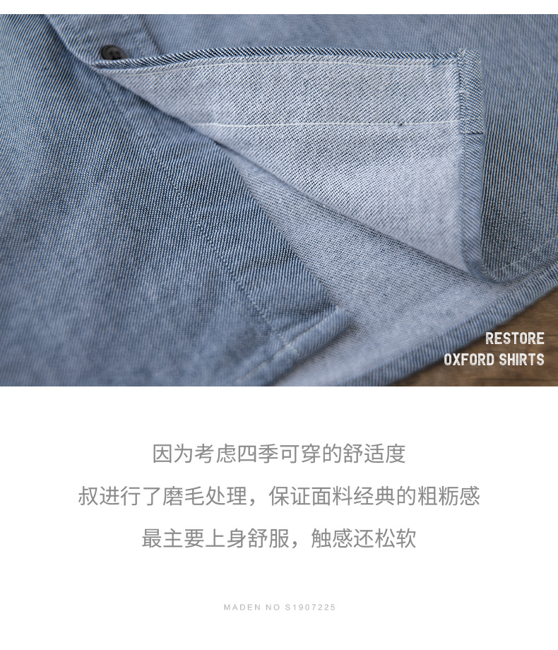 工装优选复古磨毛长袖薄衬衫牛津纺纯棉休闲外穿衬衣打底衫男春