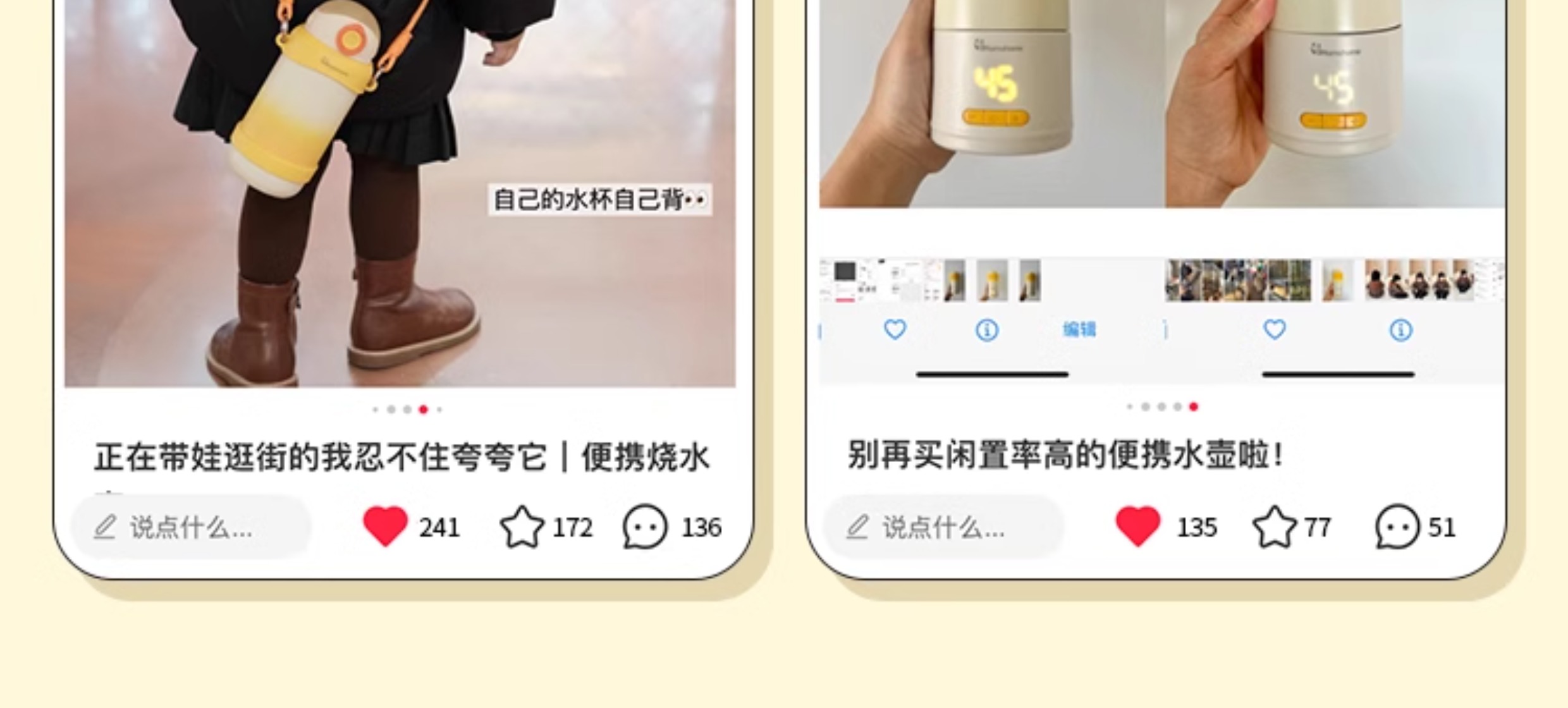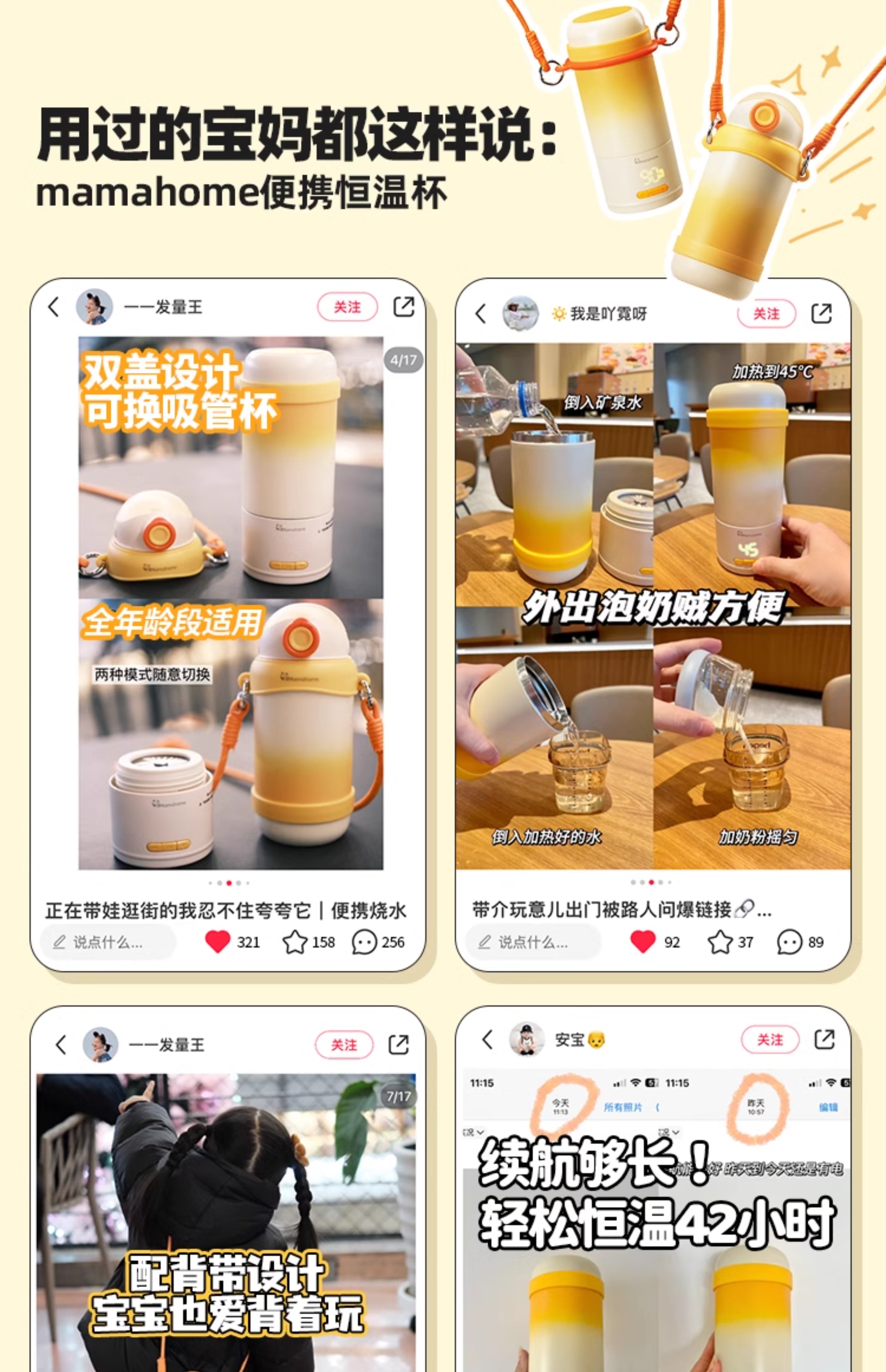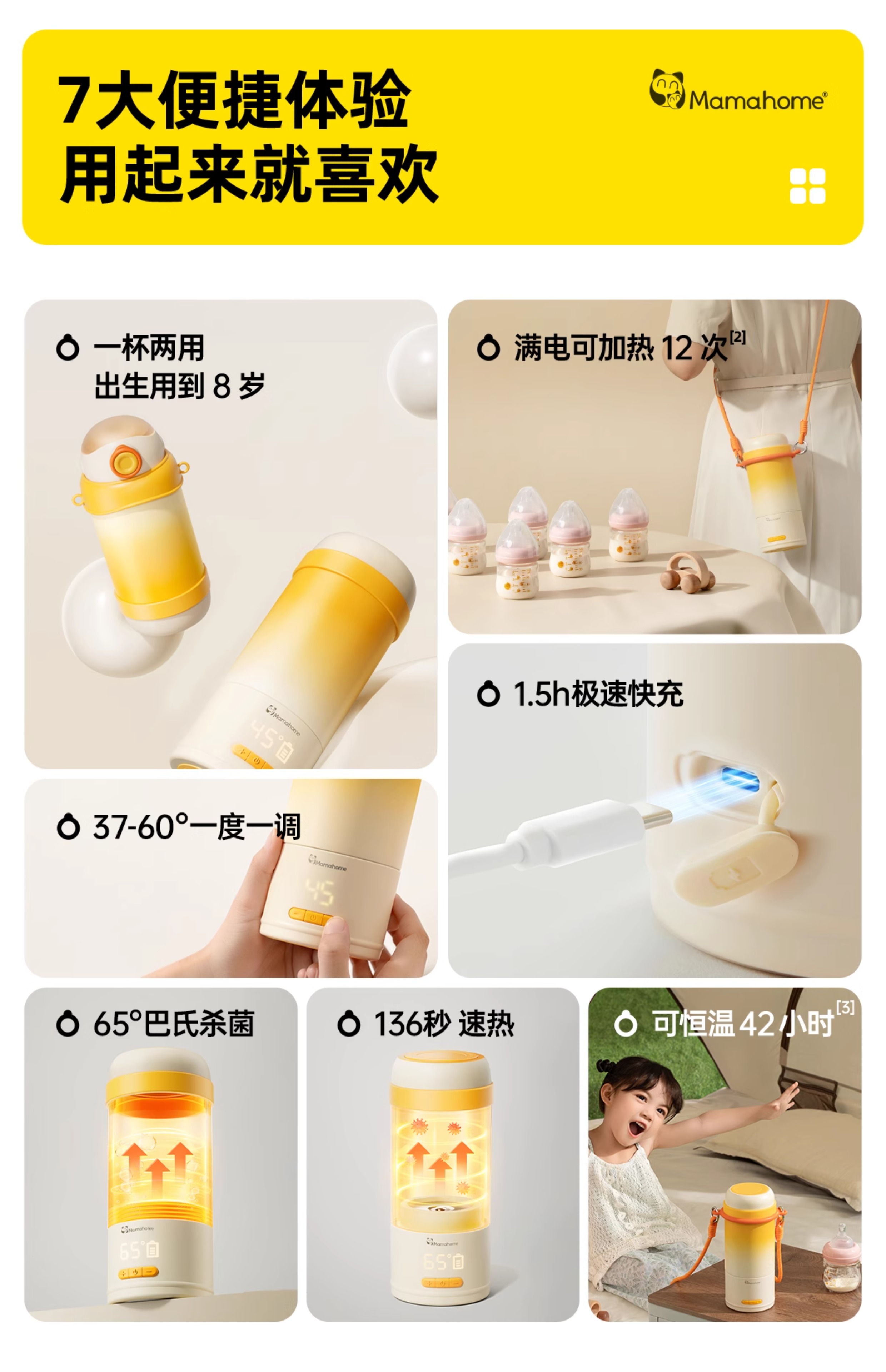 【大容量电池】电池容量2700mahx4,充满电可以烧12次200ml水,恒温42小时;