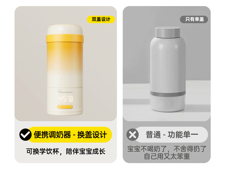 【一杯两用】不止是宝宝的调奶杯,也是宝宝的学饮杯,断奶不闲置;换盖可两用
