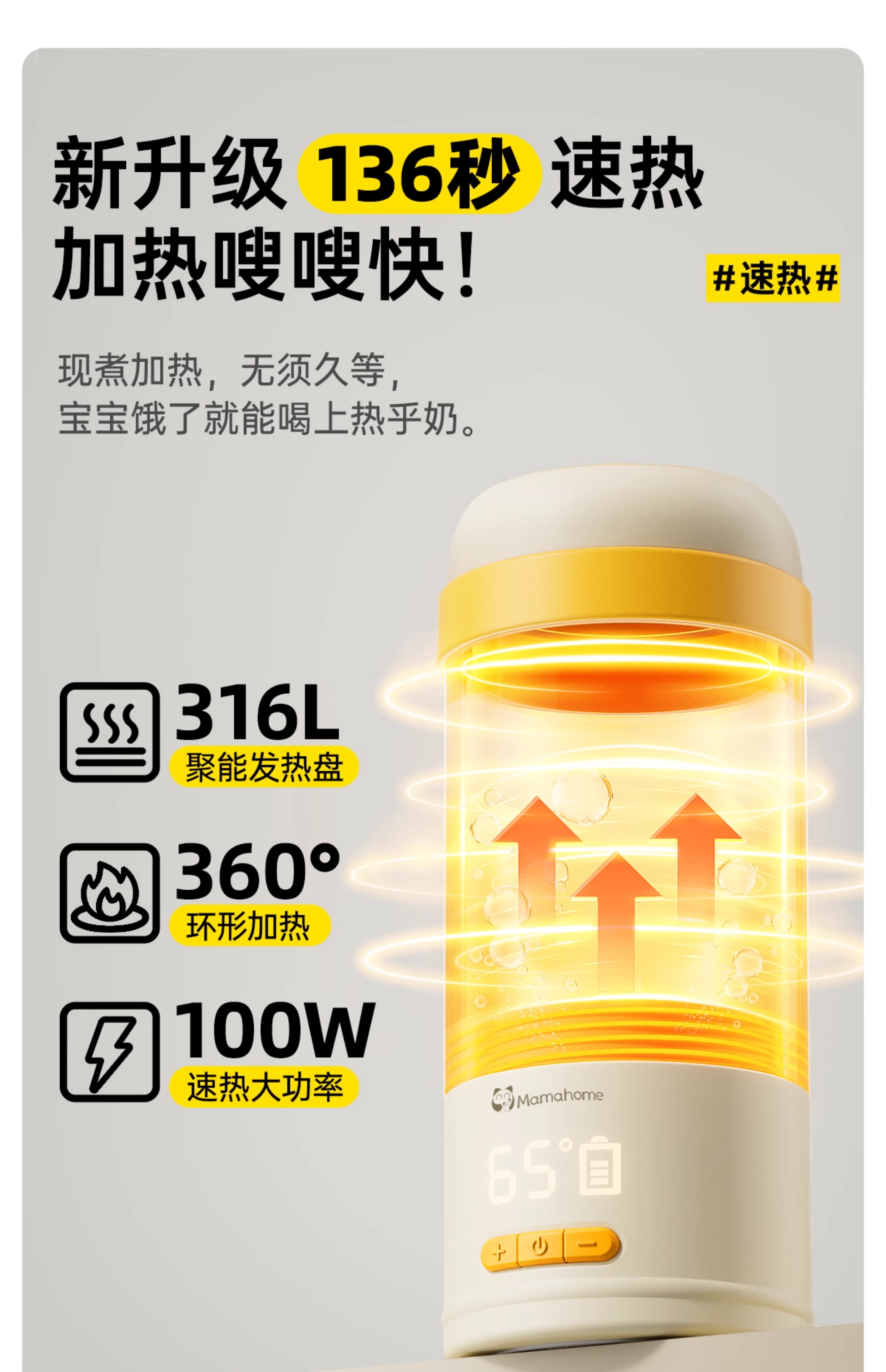【136秒速热】150ml水从25℃加热至40℃仅需2分16秒