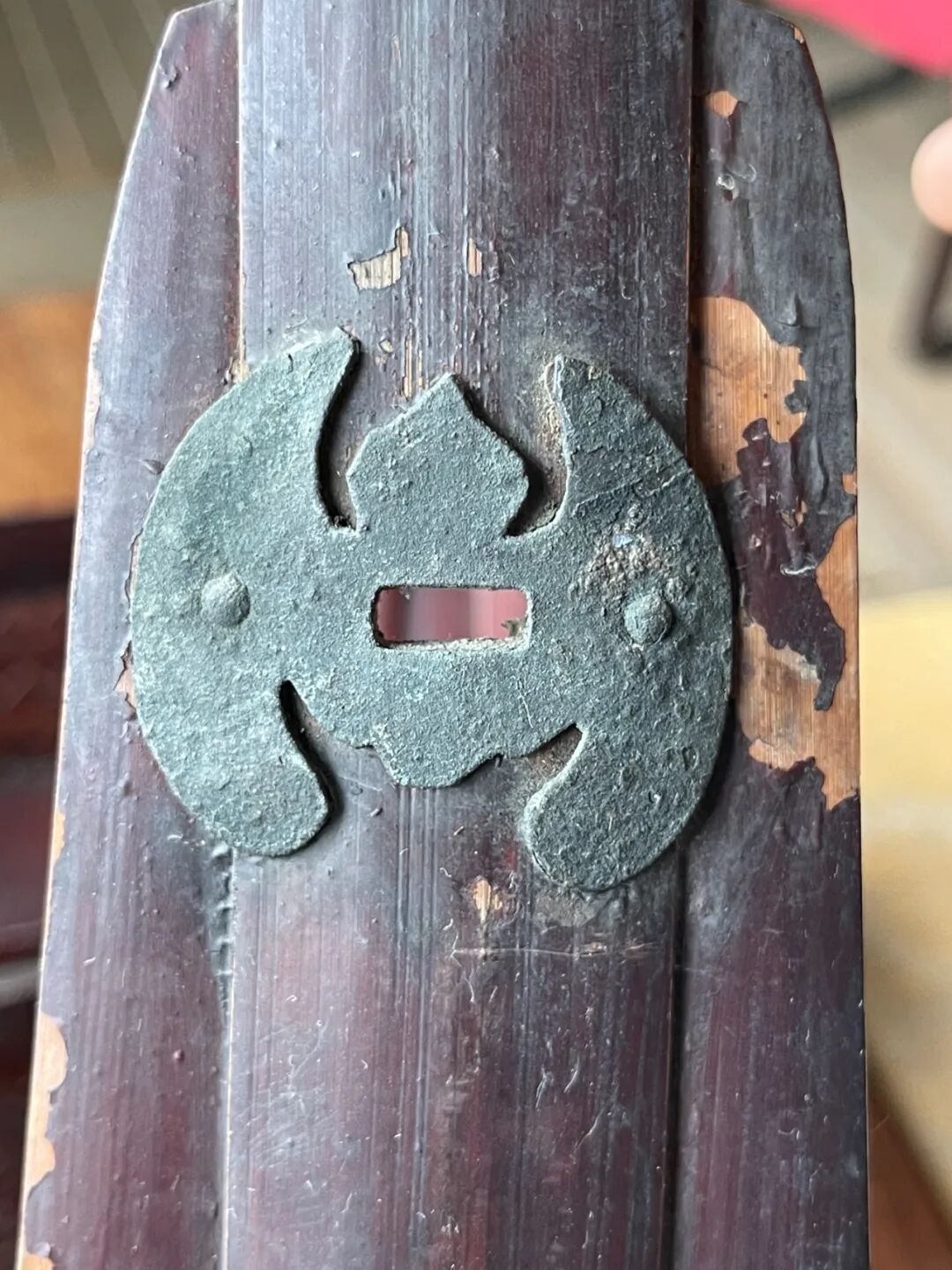 此竹编髹漆双层提梁食盒,如图所示除小部分表面大漆剥落外,基本保存完好。表面蒙灰积垢,可依个人喜好清洗。