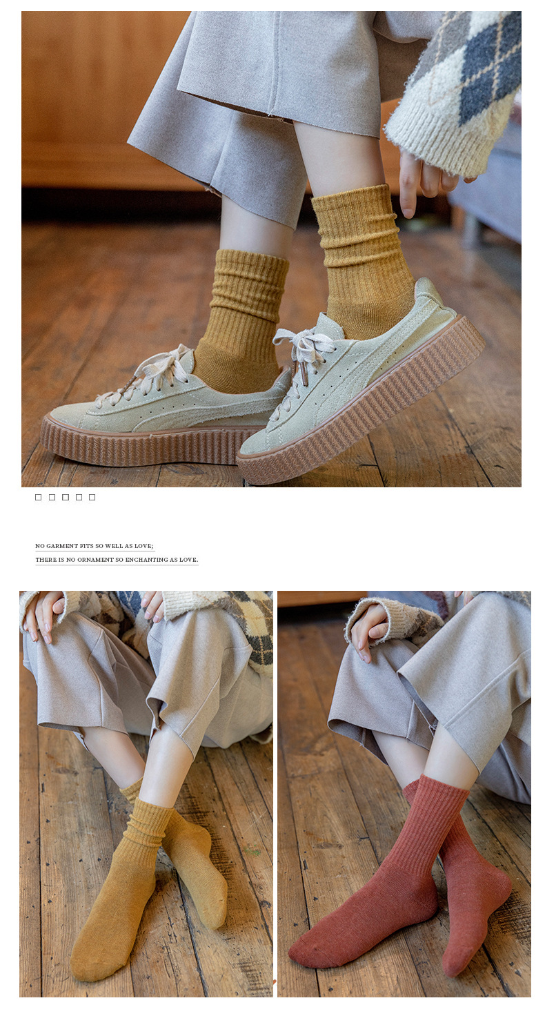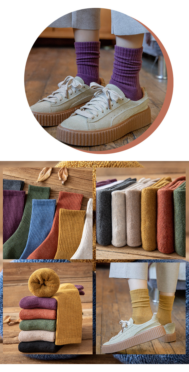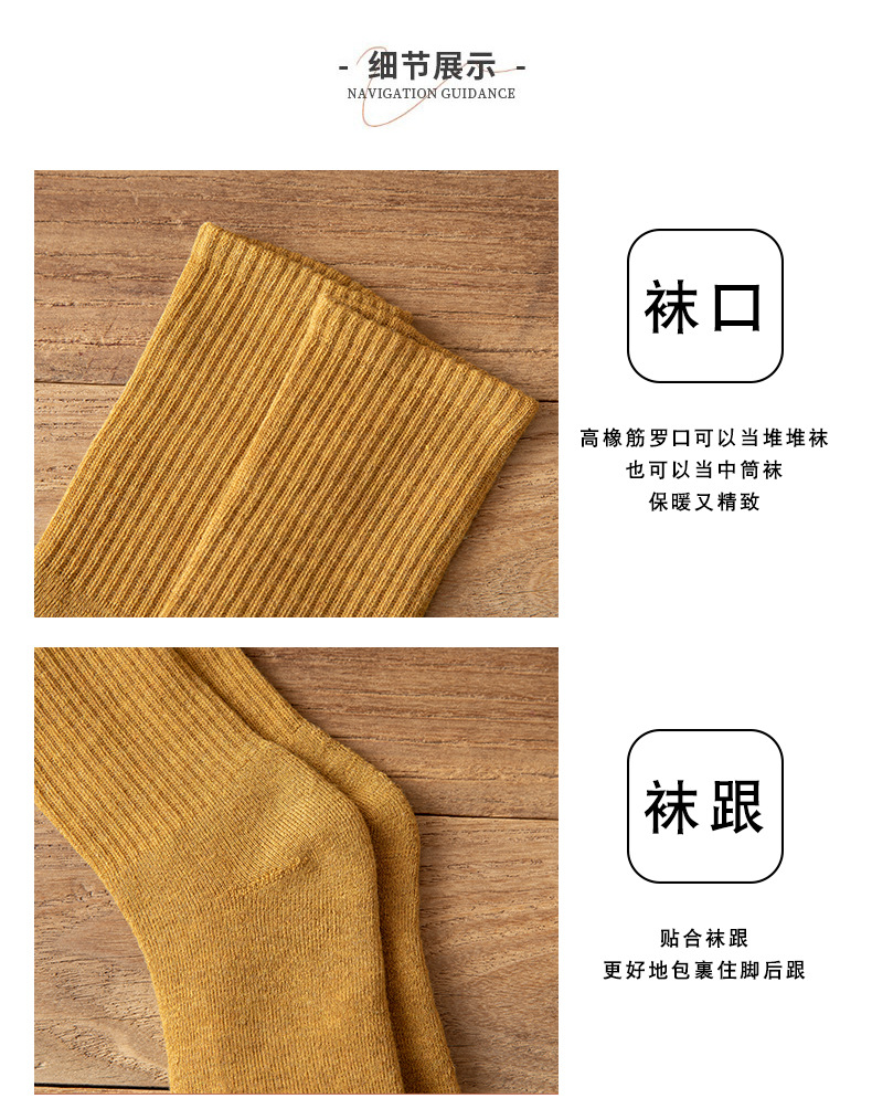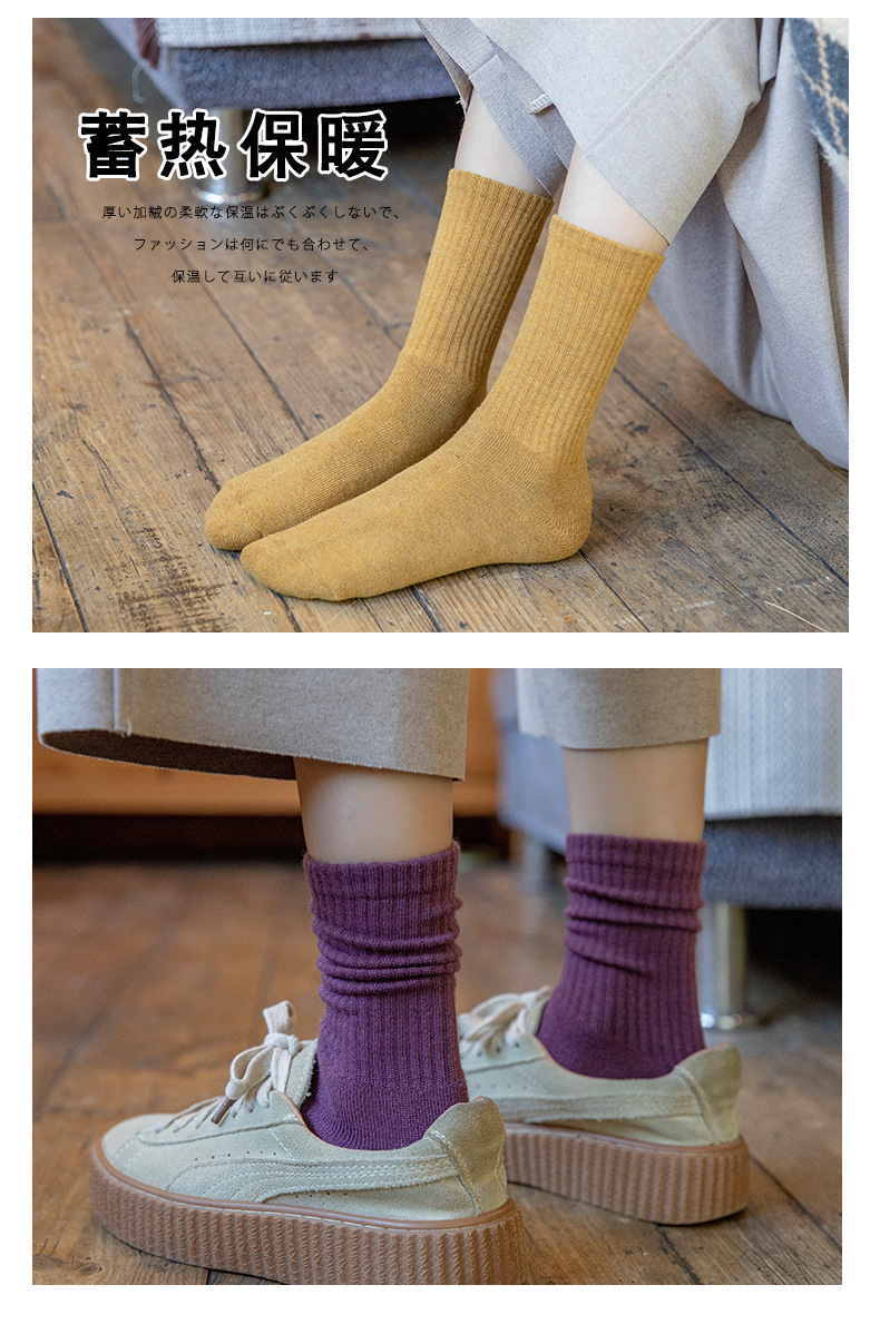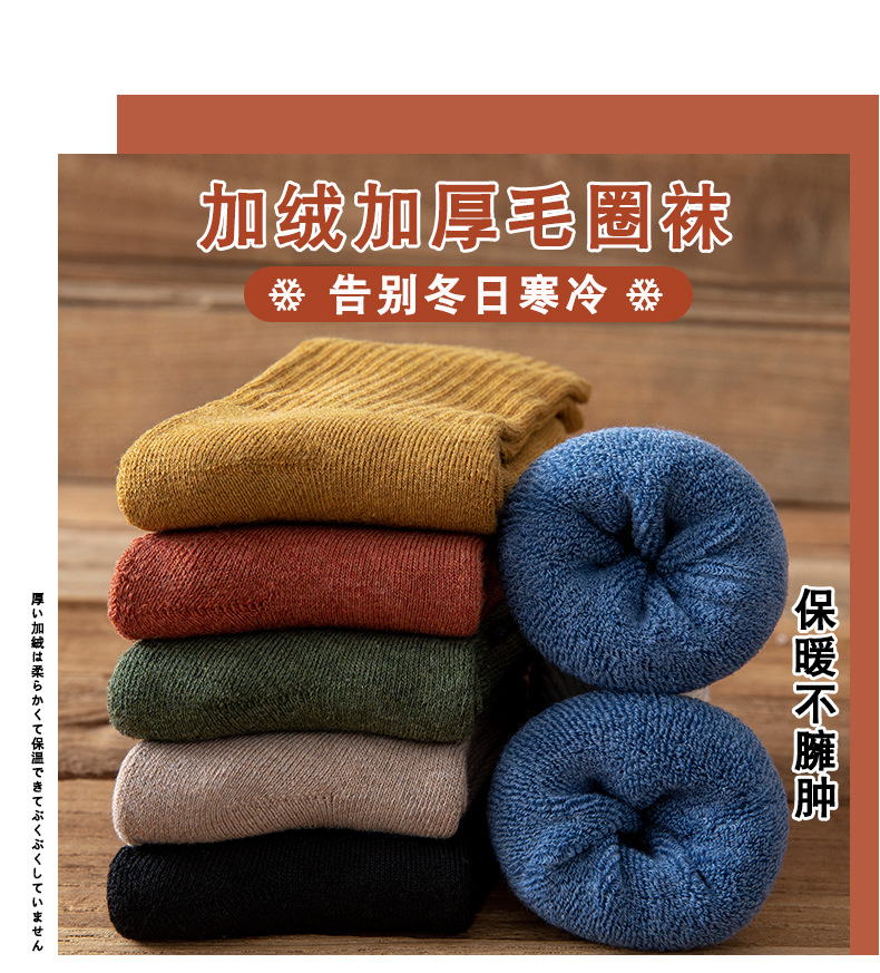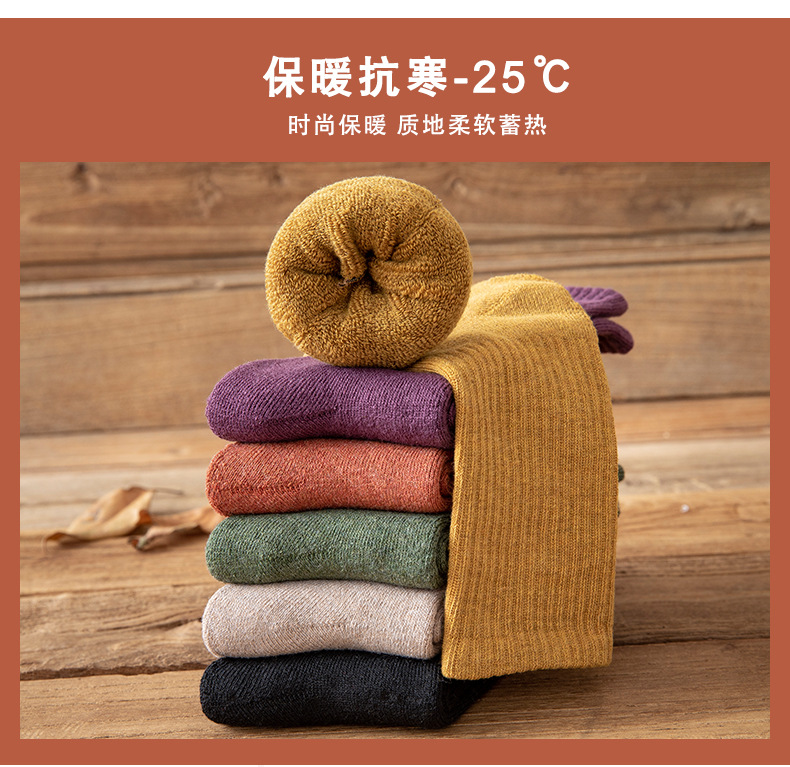 【5双装 毛圈加厚 持久锁温】袜子女秋冬季中筒袜加绒加厚保暖纯色女袜长筒高橡筋毛圈袜堆堆袜