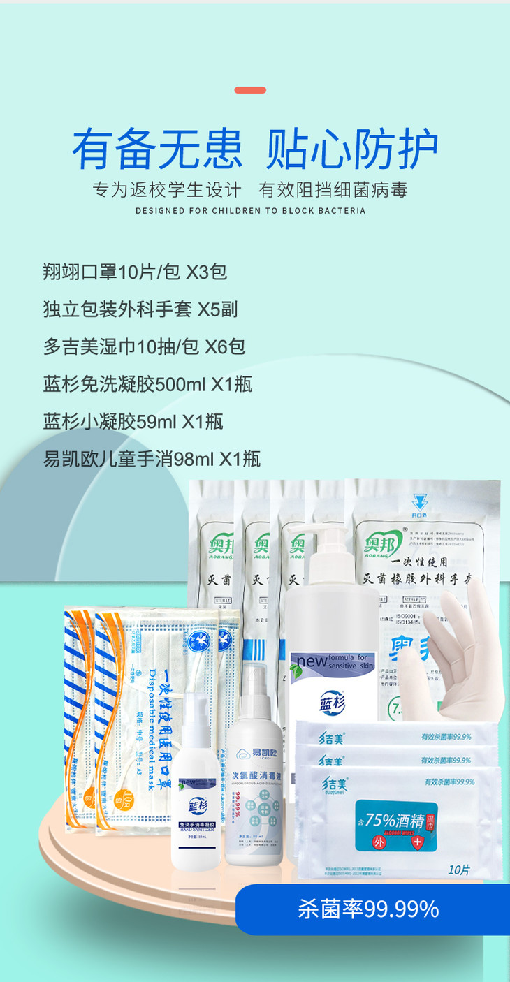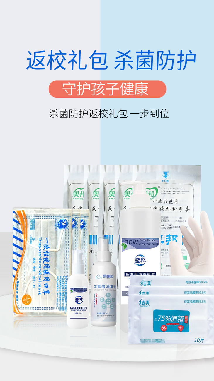 美亚健康 返校礼包 免洗手消 消毒湿巾 医用口罩 包邮 预售