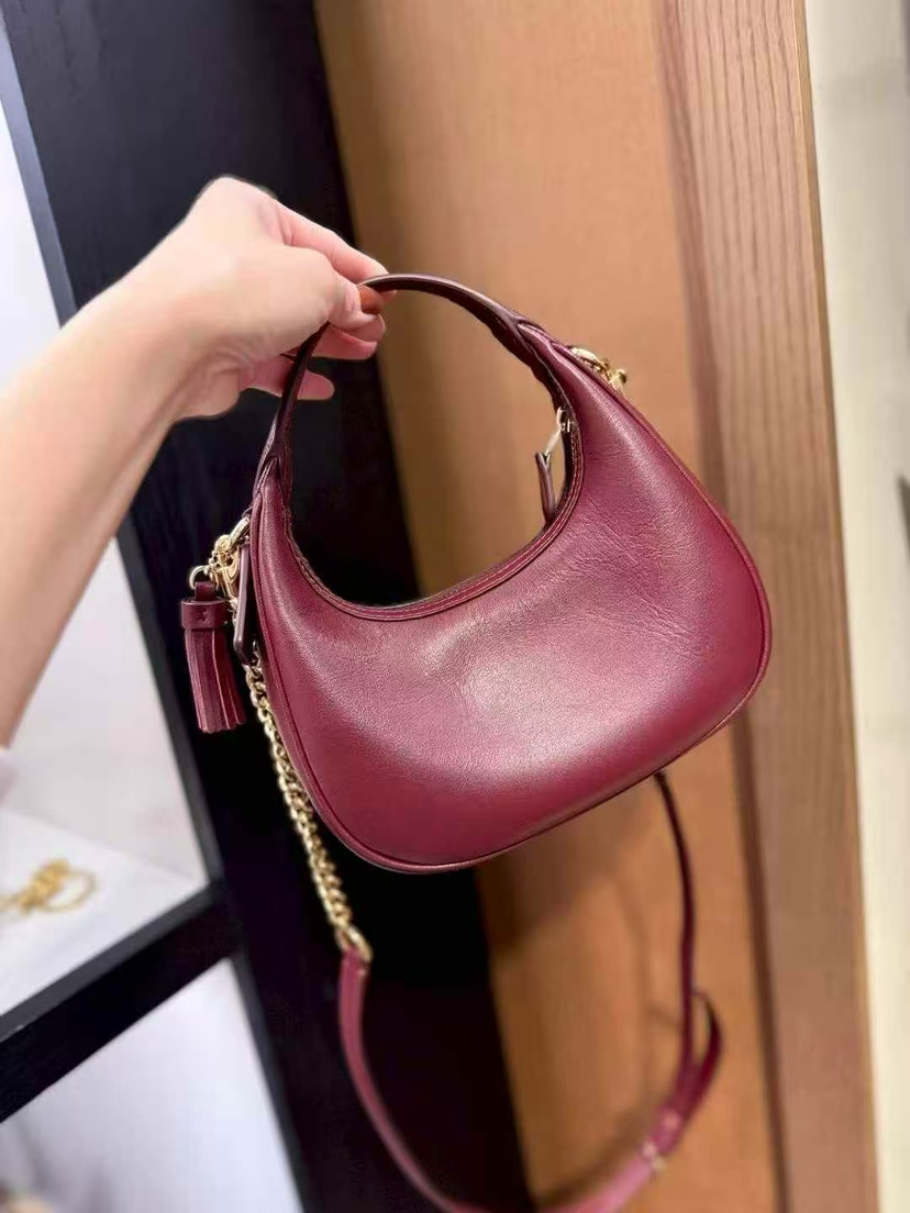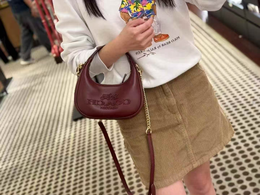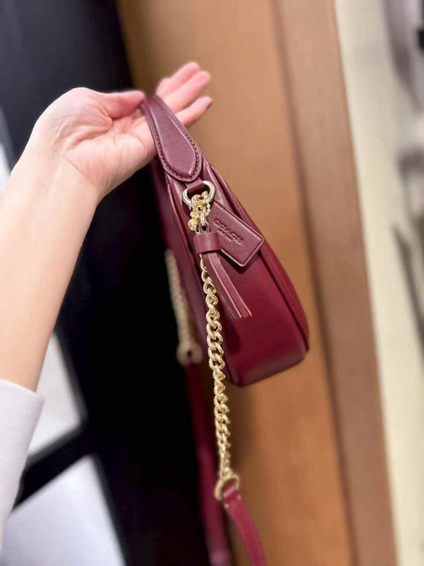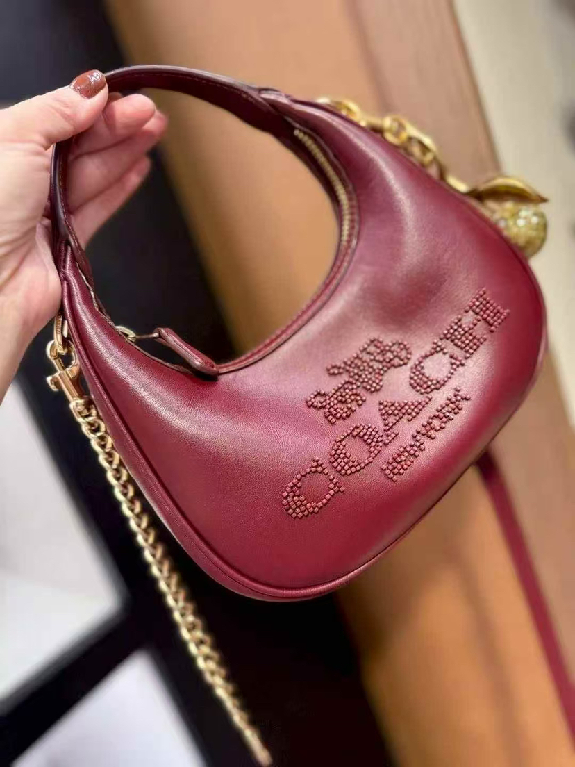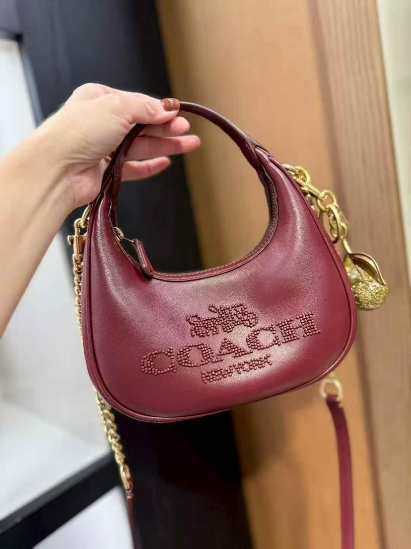 上新折扣¥1650🇺🇸直邮,Coach最新款Carmen 酒红色全皮钉珠大logo(不含金色樱桃钥匙链),🉑手提斜挎包,miumiu少女风