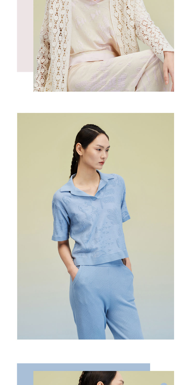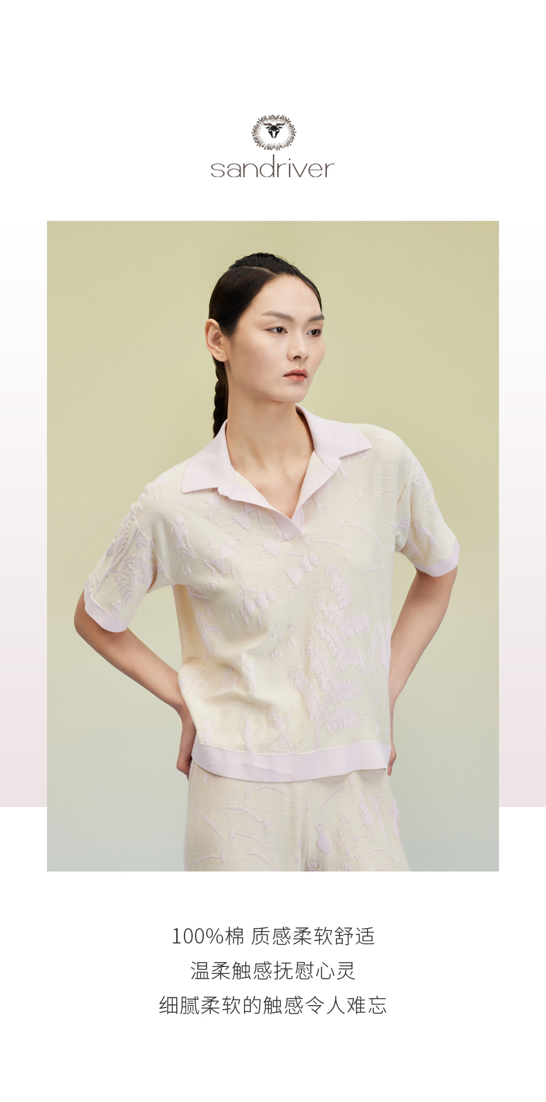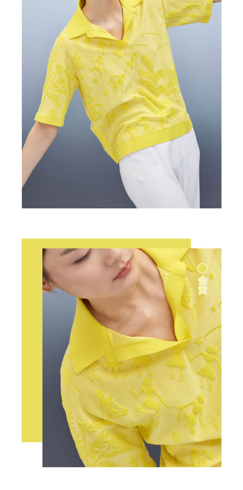 芝麻点提花POLO领提花短袖女上衣 SJS95W050K