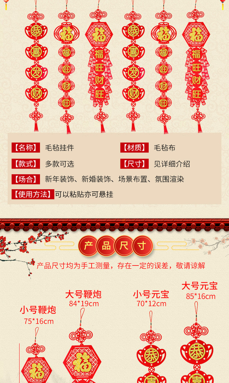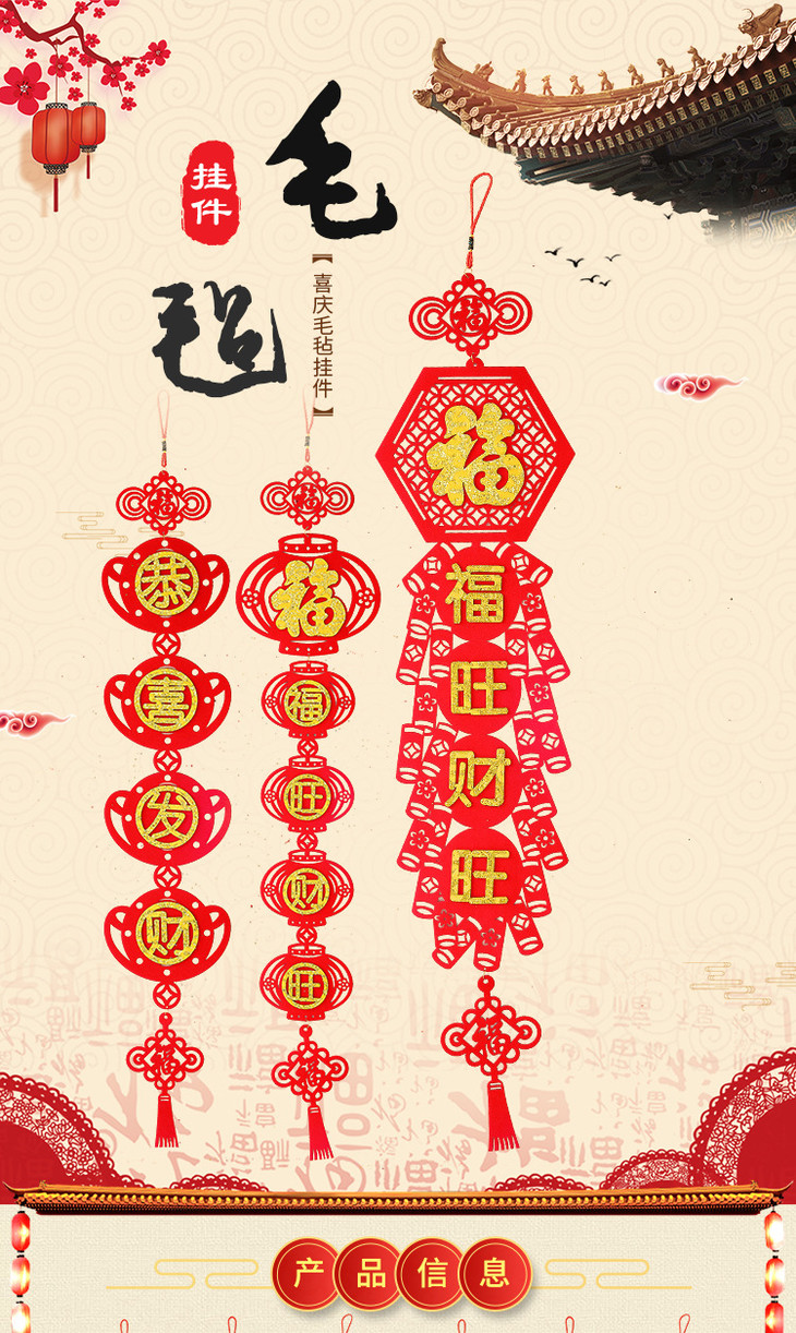 【春节装饰】*中国结毛毡布客厅福字挂件挂饰客厅乔迁新年春节过年牛年装饰