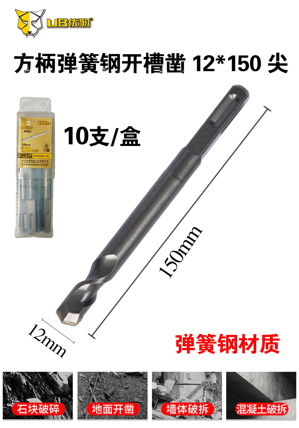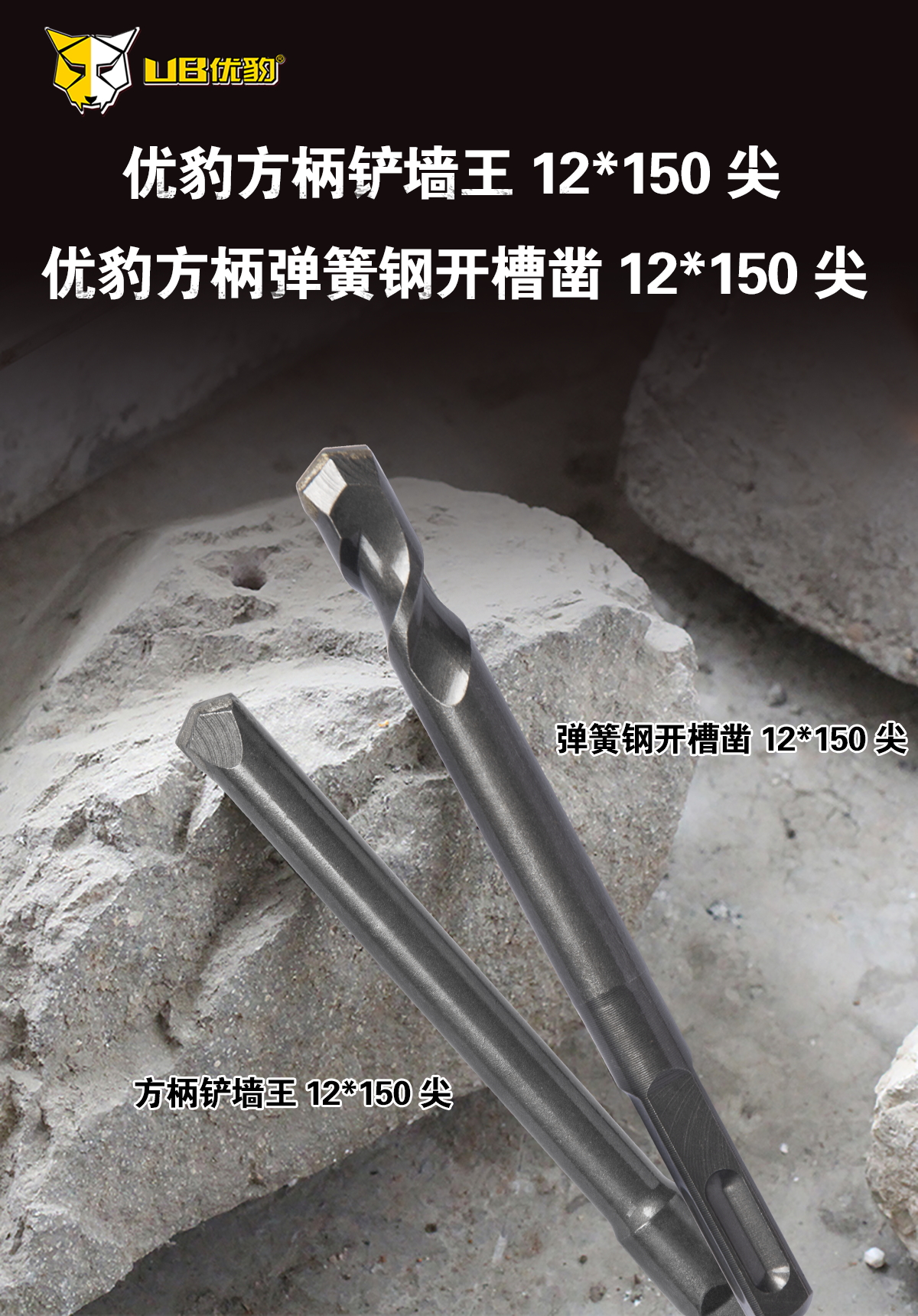优豹方柄12*150尖 铲墙王/弹簧钢开槽凿