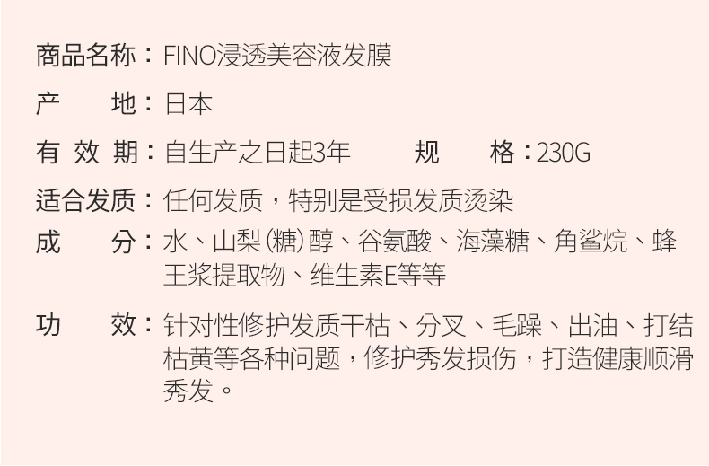 日本资生堂fino发膜免蒸护发素顺滑毛躁滋润柔顺烫染修复