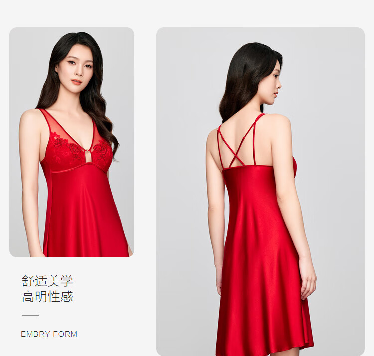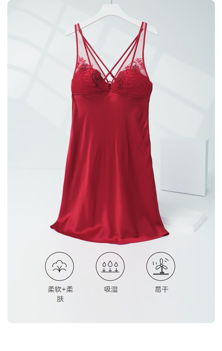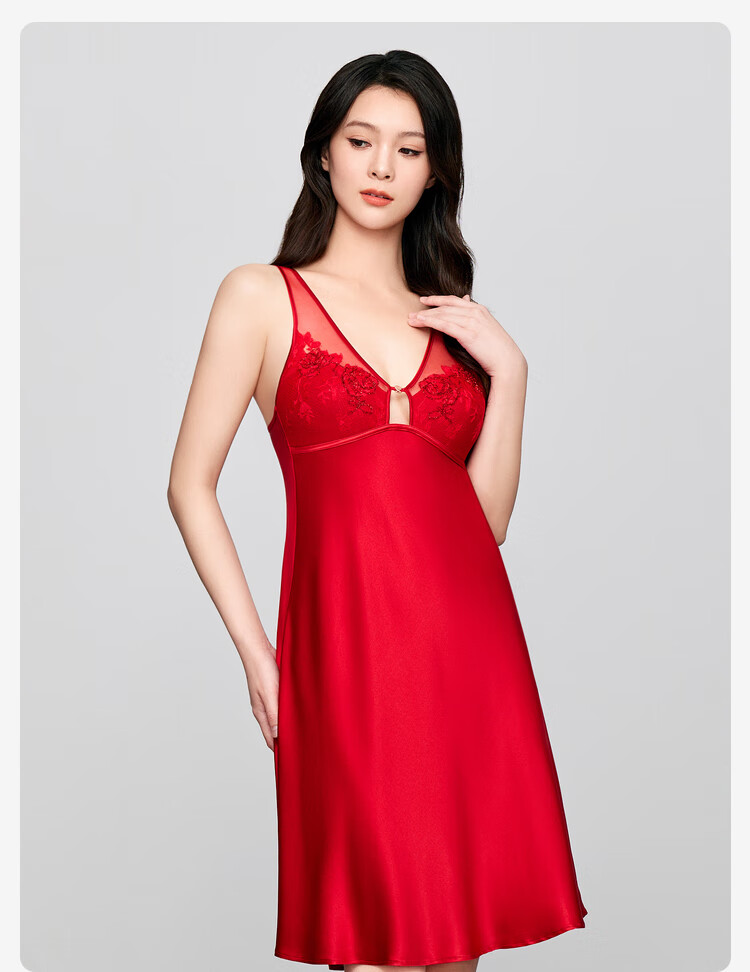 【3F】安莉芳桑蚕丝v领吊带短裙女士家居裙 EL00816