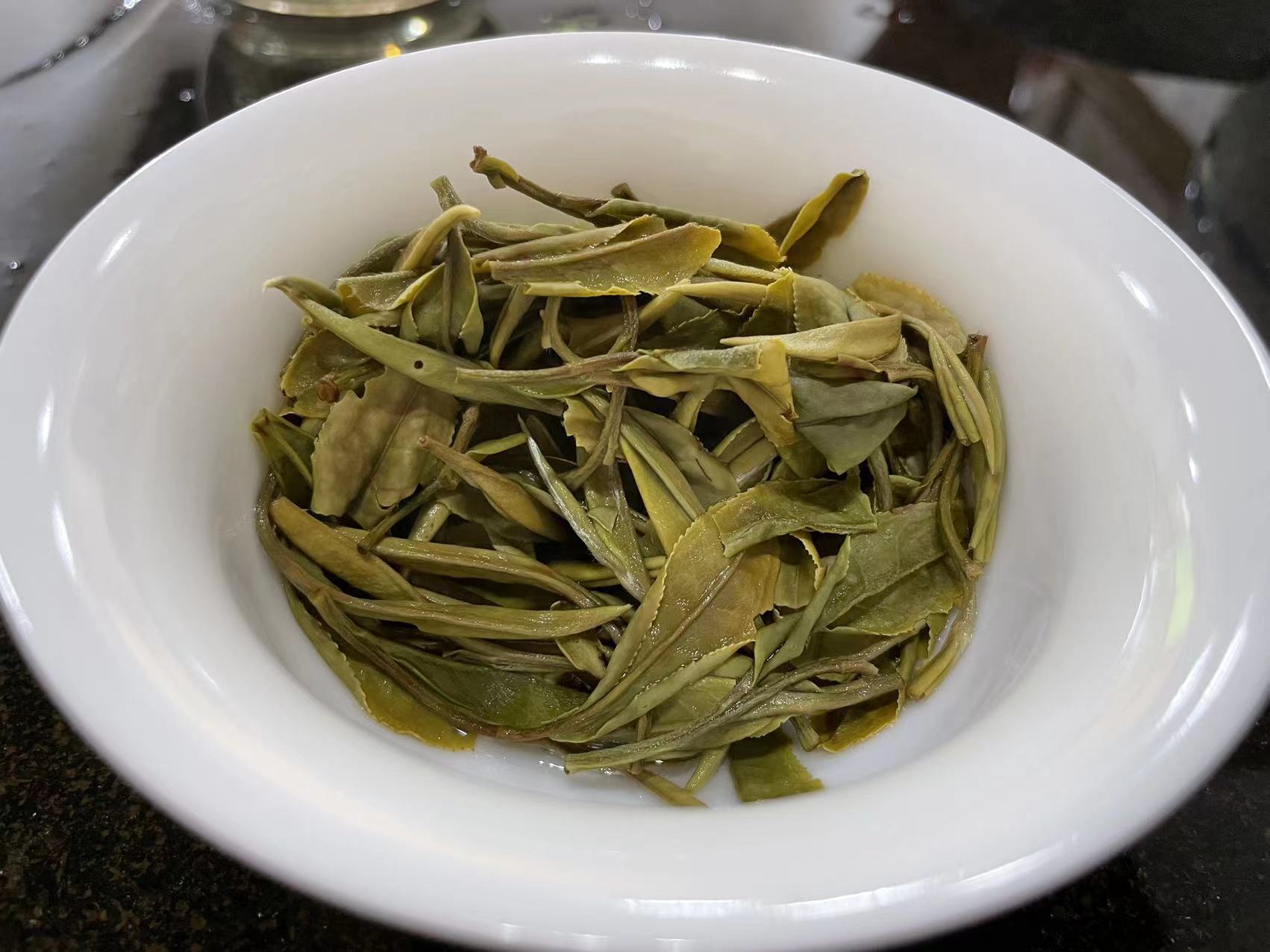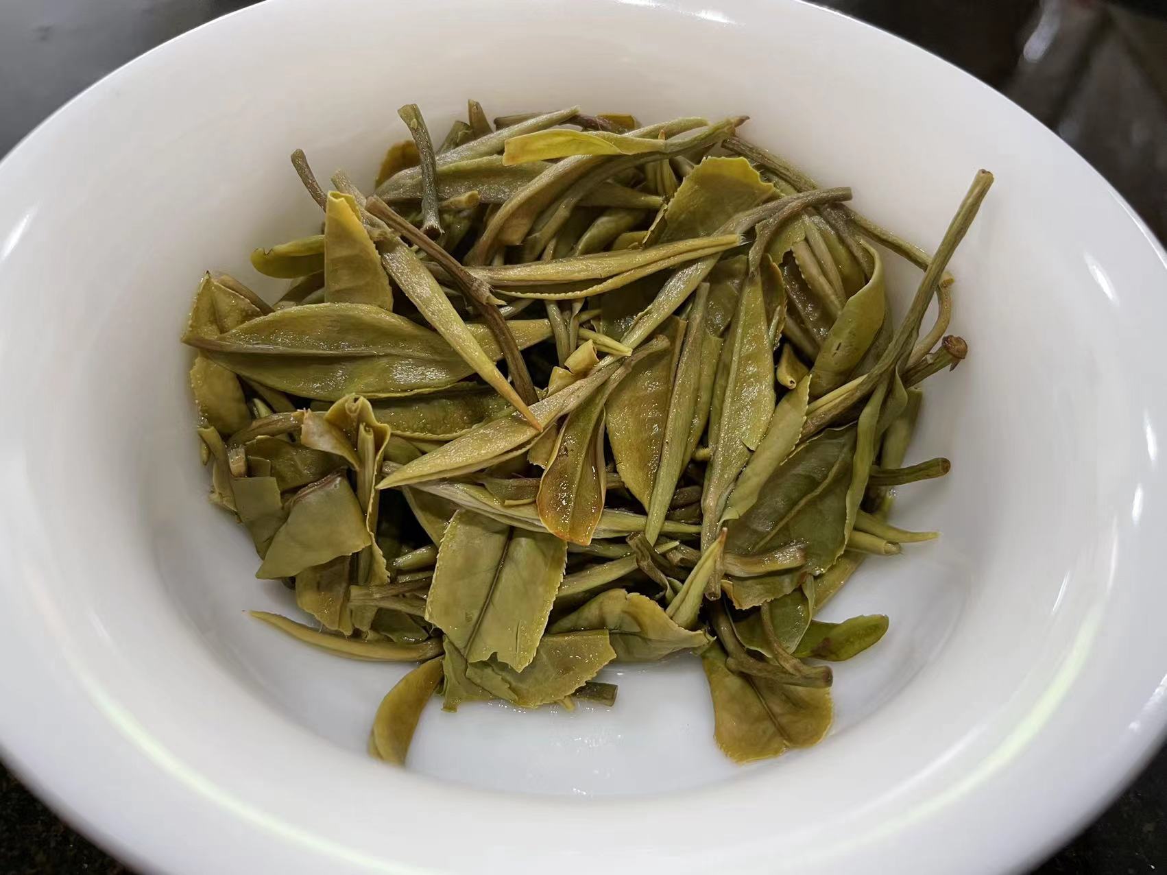 干茶如上,芽头整体多余叶张,同时芽比叶子长,这证明大约属于一级牡丹的级别。