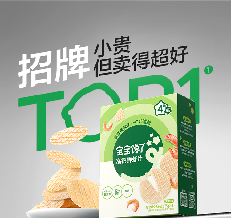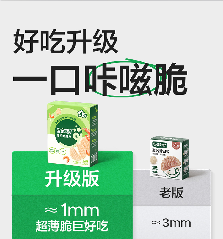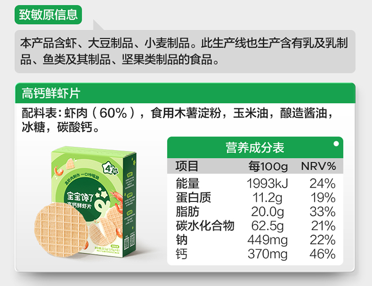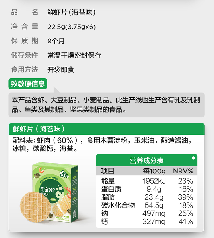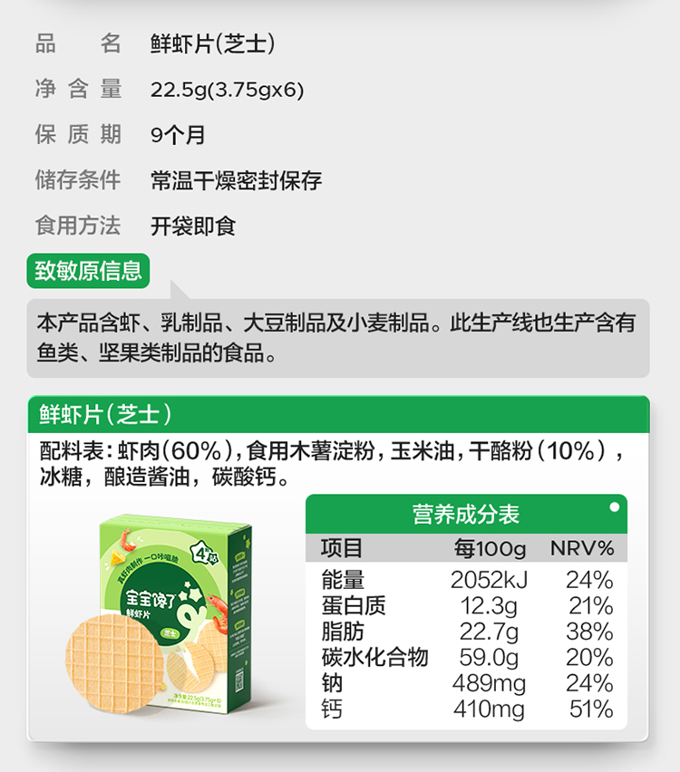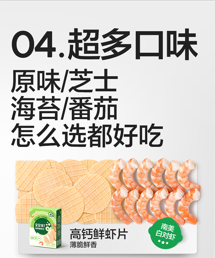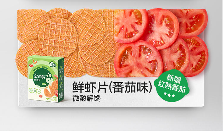 【宝宝馋了】多口味鲜虾片 22g(高钙鲜虾片/芝士鲜虾片/海苔鲜虾片/番茄鲜虾片) 60%虾肉 送12月+婴幼儿食谱
