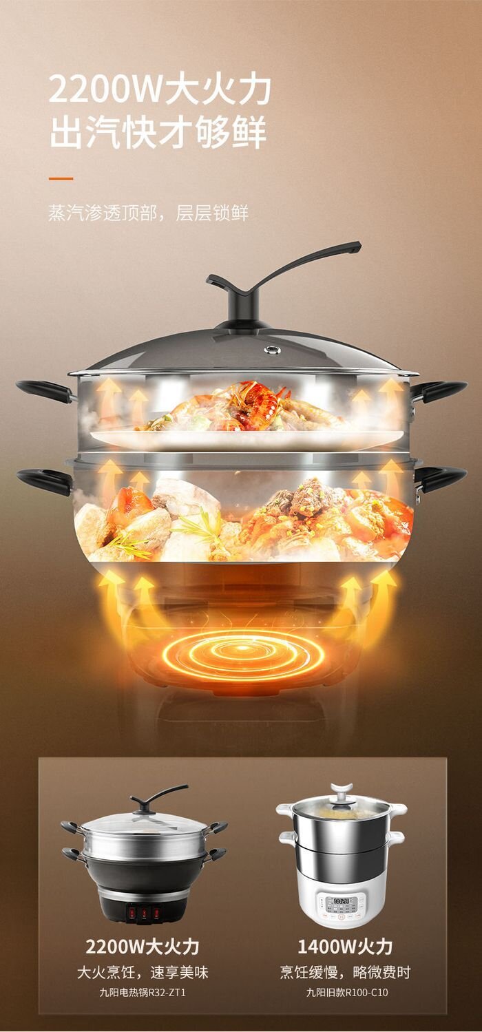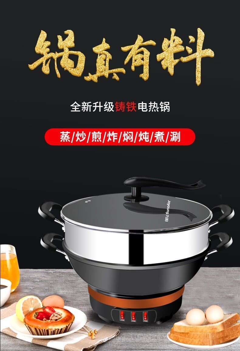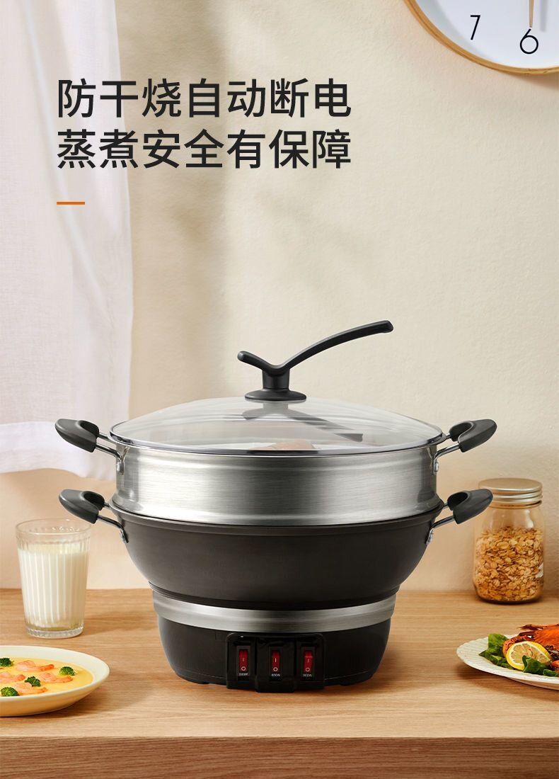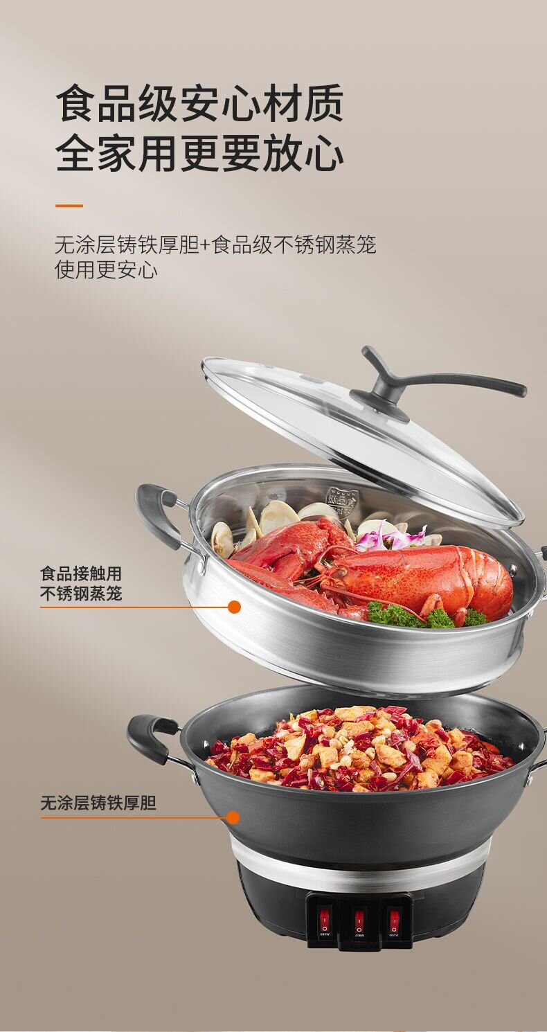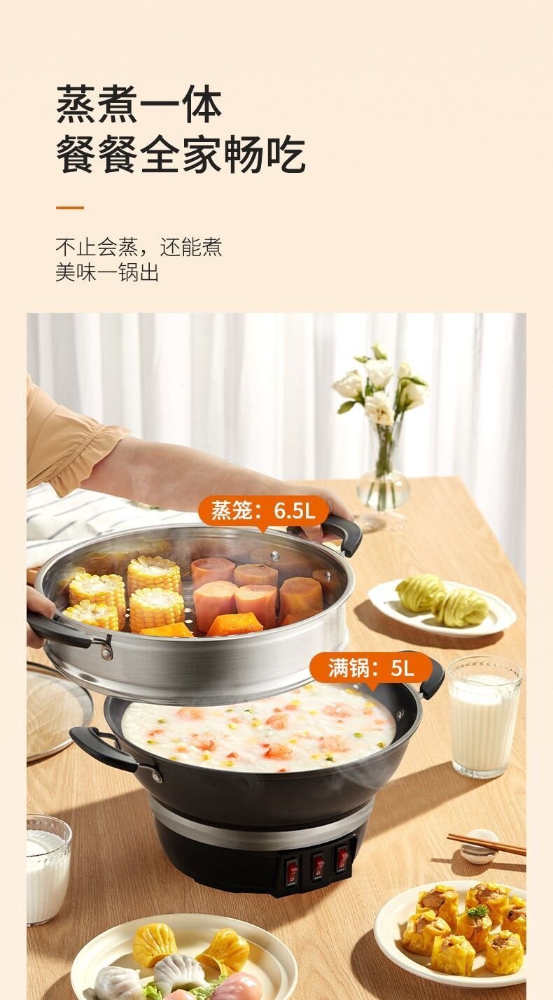 九阳电热锅铸铁一体式上蒸下煮电蒸锅家用多功能电炒锅电煮锅火锅