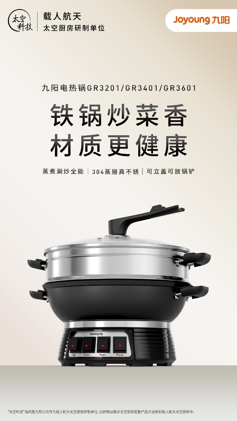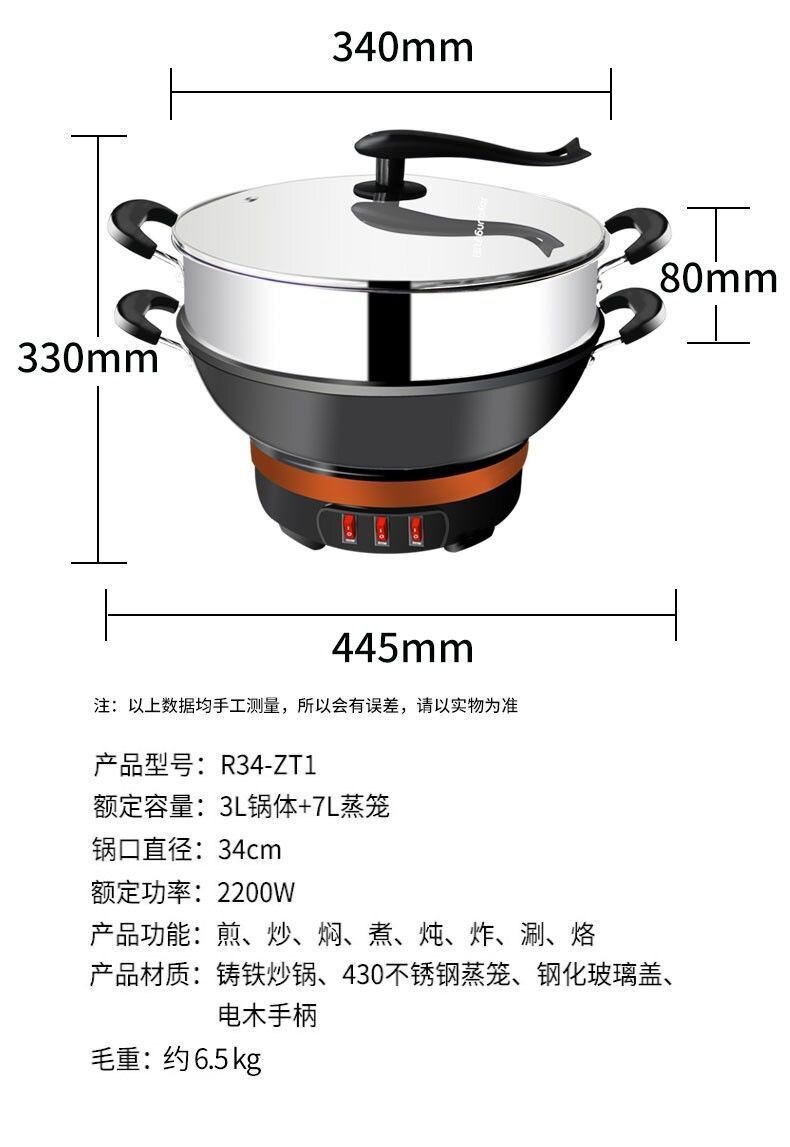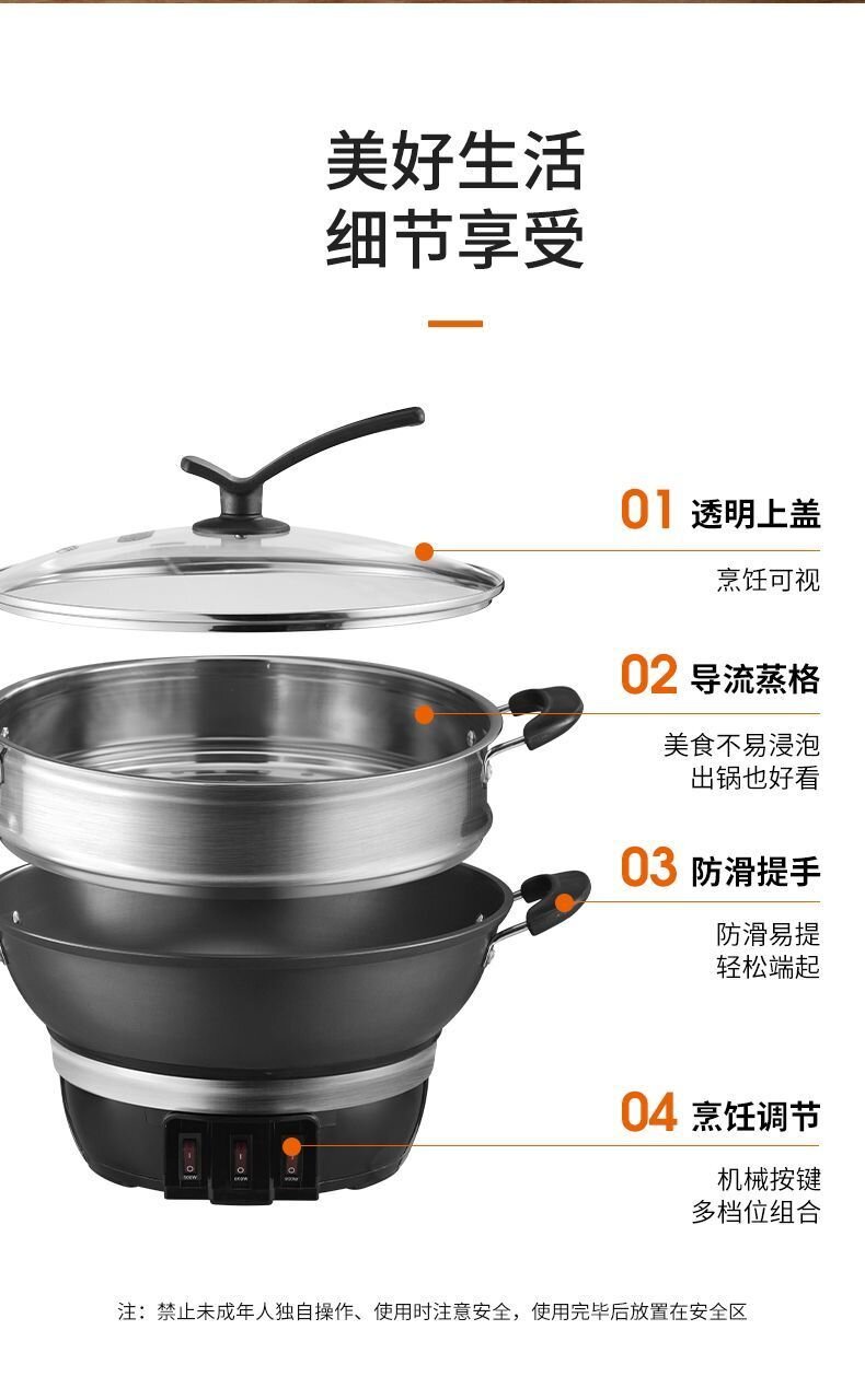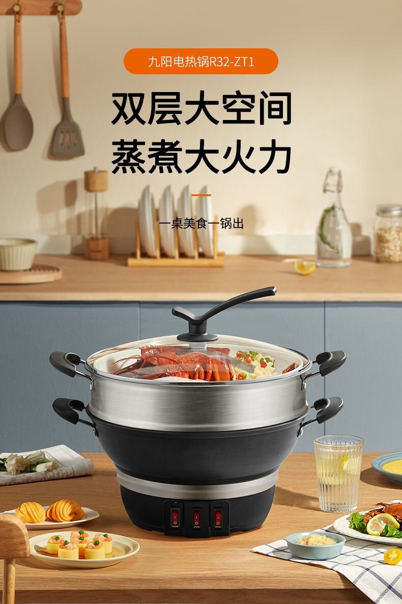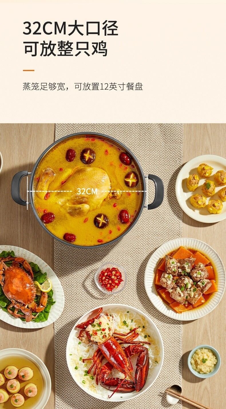 九阳电热锅铸铁一体式上蒸下煮电蒸锅家用多功能电炒锅电煮锅火锅