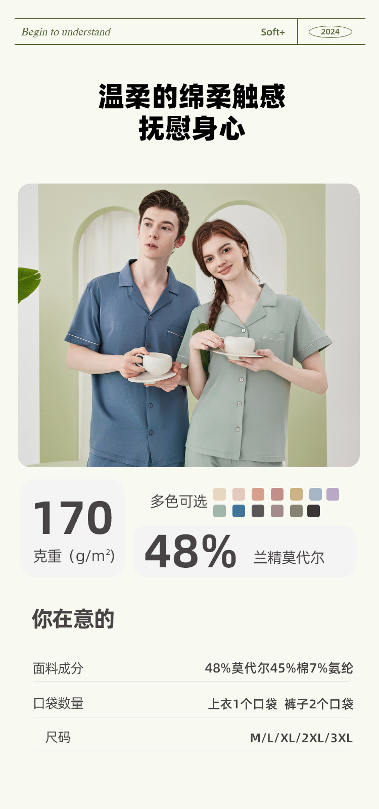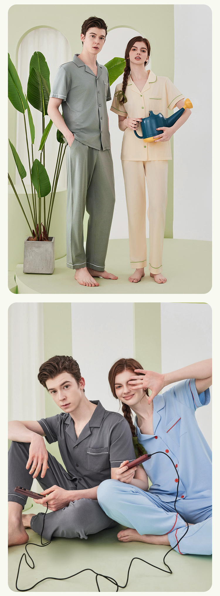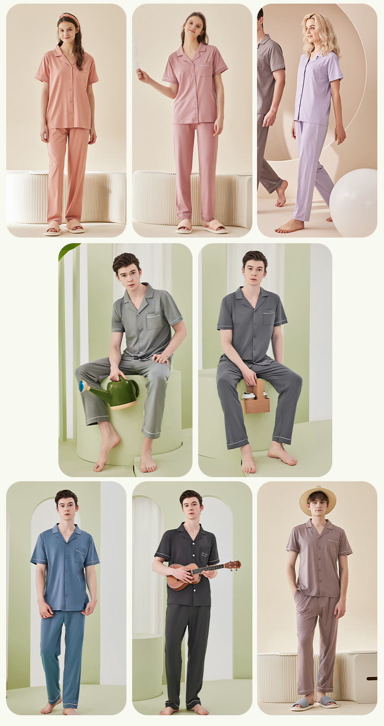 兰精莫代尔棉男士睡衣男春夏季高级凉感短袖长裤睡衣男家居服套装