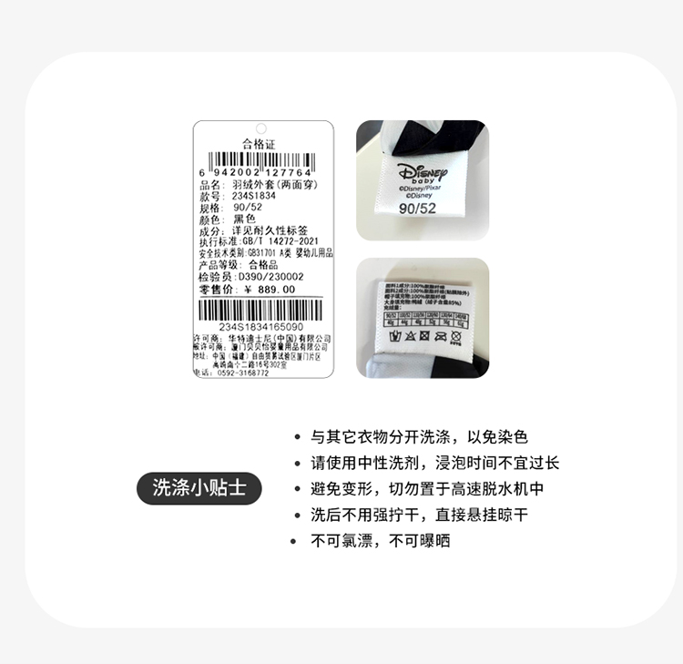 【双面穿】迪士尼儿童羽绒服男童秋冬新款中大童两面穿外套轻薄羽绒服234S1834