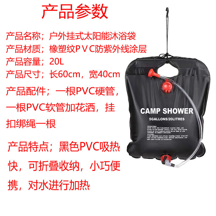 户外挂式折叠沐浴袋太阳能热水袋洗澡晒水包20L储水袋野外自驾游