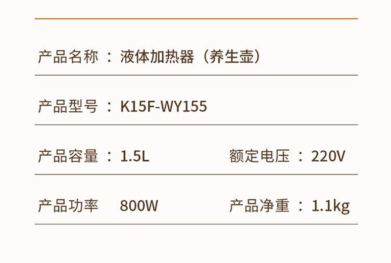 【升级款】Joyoung九阳WY155养生壶家用煮茶器1.5L电热水壶开水煲