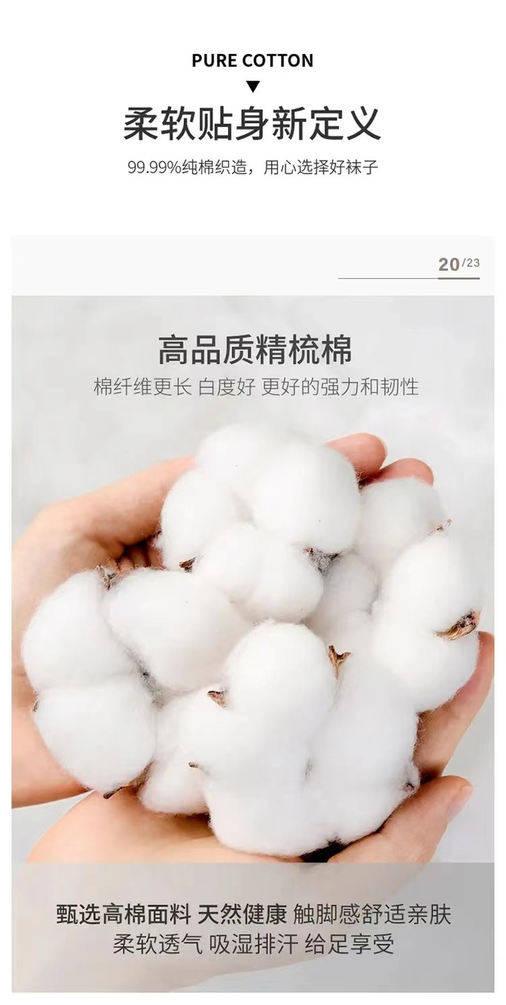 猫人的运动小短袜用的是年日照量高达2920小时的新疆40支长绒棉,棉纤维更长,强力和韧性也更好哦。袜袜将40支的长绒棉进行了200针的细密针织,扎实而精密,是很多国际轻奢品牌使用的织法,因此弹性大到可以包容各种脚型。纯棉袜吸湿的特点,加上独特的编织工艺和透气设计,使得空气能够自由流通,避免脚部闷热,再通过科技妔菌 ,有效yi制三大细菌,让我们在运动中始终保持清爽和卫生!