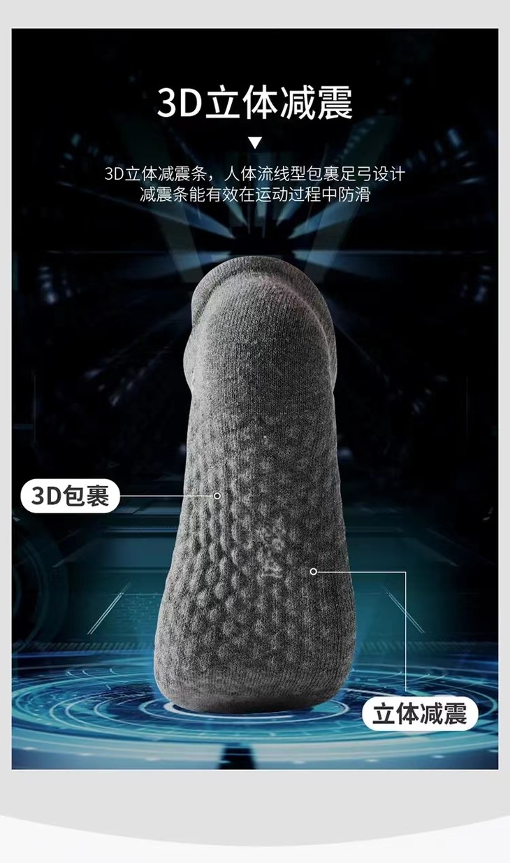 除了好原料外,设计上也非常有巧思!猫人运动袜采用了人体工学设计,多重分区,包裹到位,能够针对运动时脚部的不同受力点和汗腺分布规律,提供精准的保护。同时还做了3D立体后跟和袜底减震条,毛巾底能够在运动过程中有效防滑,保护足弓不受伤害,对于运动人来说真的太重要了!